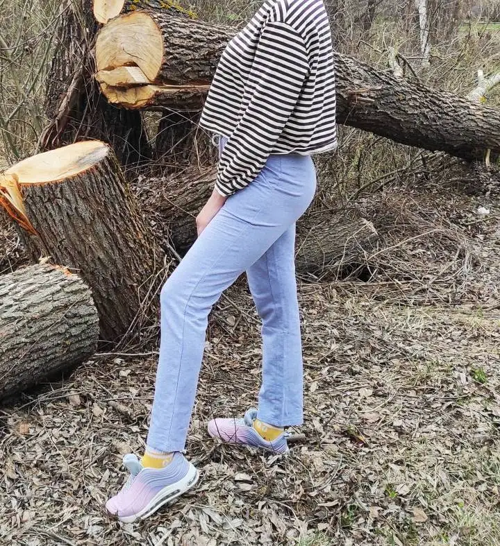 Посылка пришла в срок. Штаны отличные. Швы аккуратные, ткань приятная, брака нет. длинноватые, но для моего роста (158см) это нормально. После стирки чуть-чуть подсели и даже стали лучше смотреться, как ни странно. Просто до ВТО спереди штаны некрасиво "провисали" в области живота. Этот магазин мне нравится. Не первая вещь, заказанная здесь. Но сейчас есть претензия к продавцу: в личной переписке я просила помочь подобрать размер, чтобы модель сидела СВОБОДНО. Указала все свои параметры. А получилось, как видно на фото, совсем не так ...