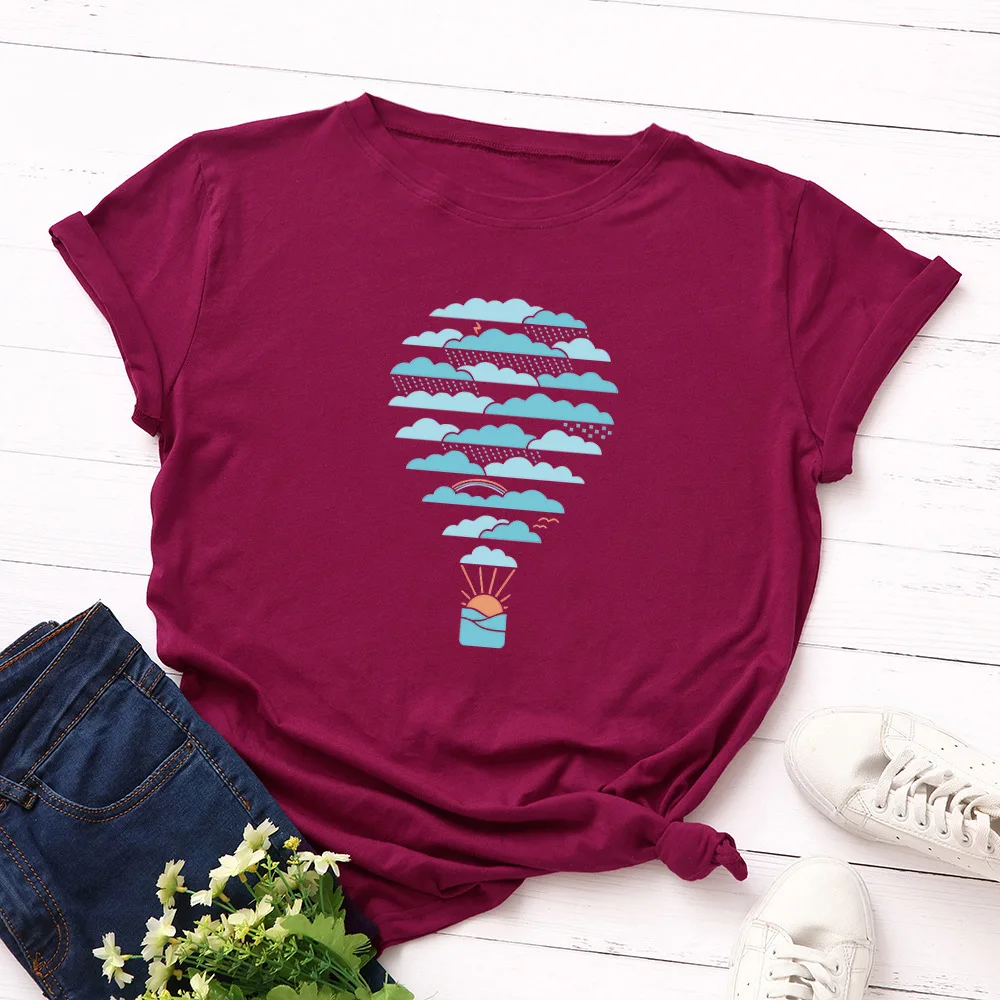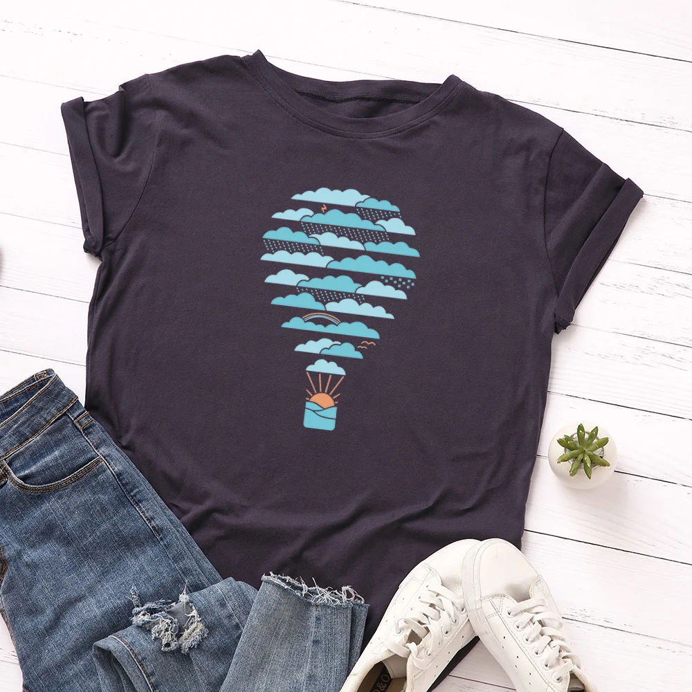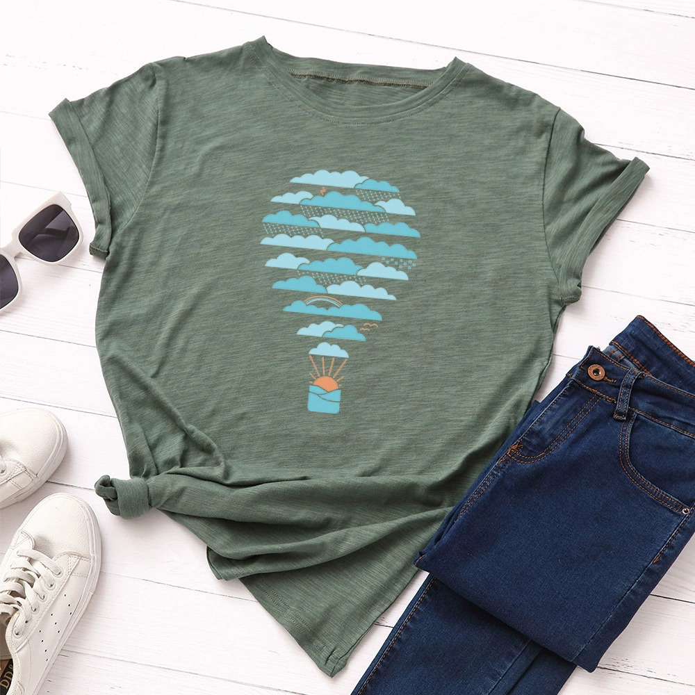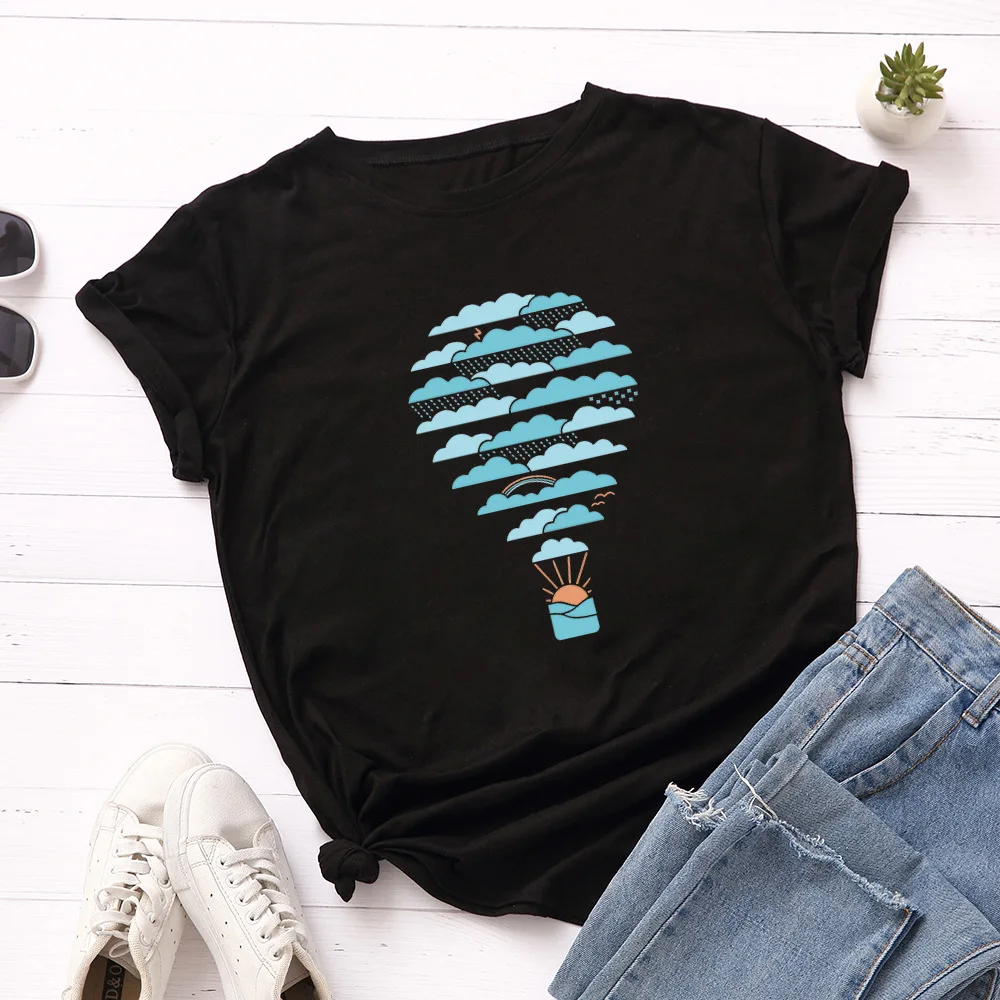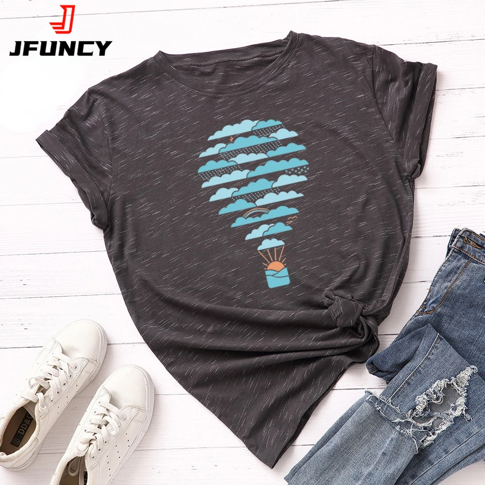 Женская хлопковая футболка с коротким рукавом JFUNCY, летняя футболка с принтом воздушного шара