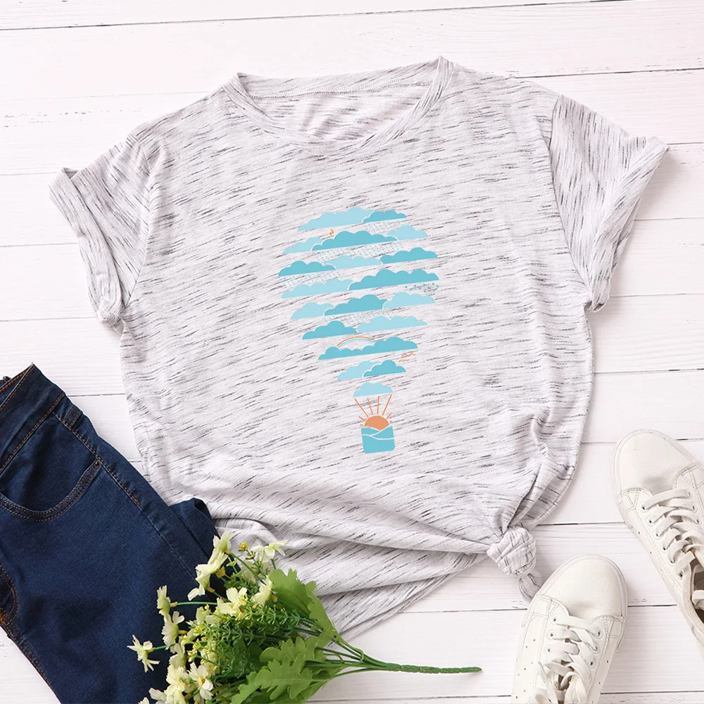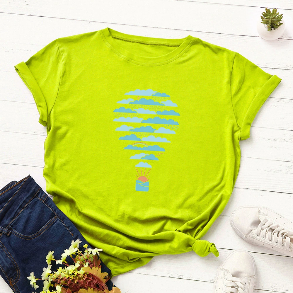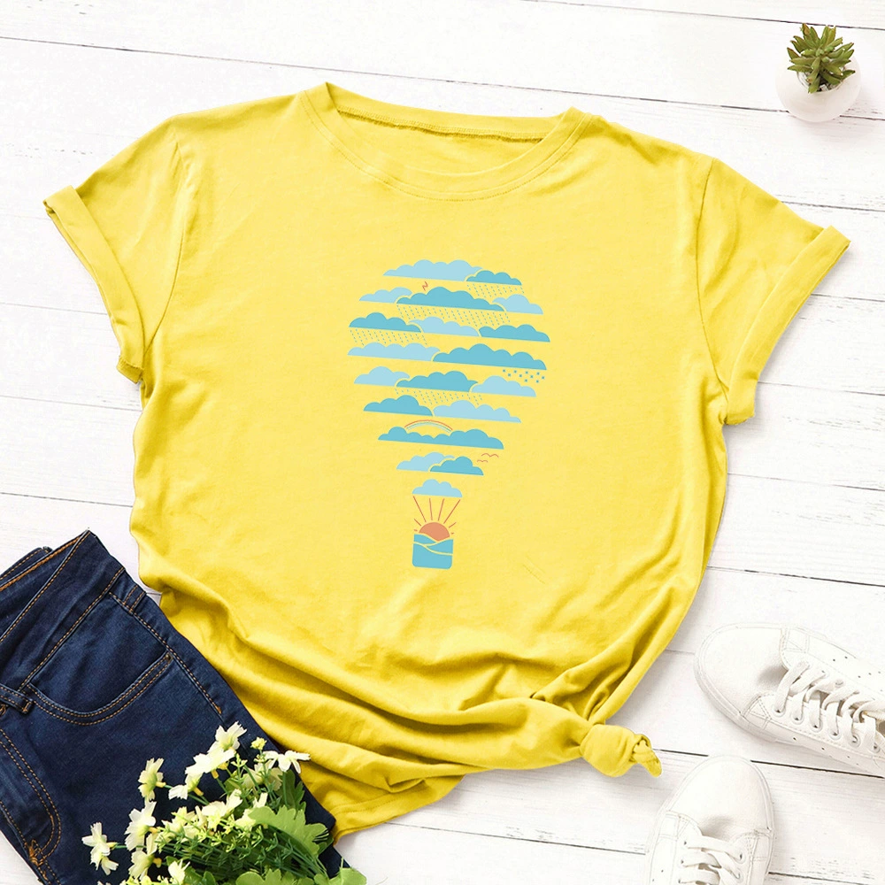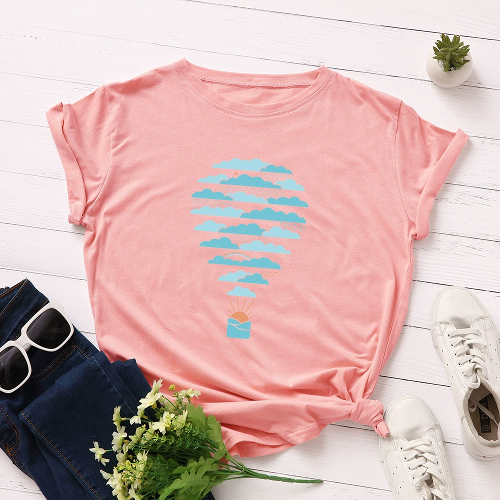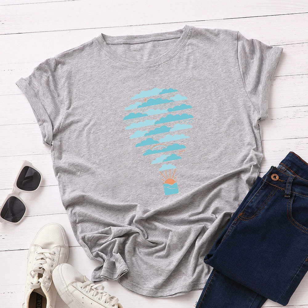 Женская хлопковая футболка с коротким рукавом JFUNCY, летняя футболка с принтом воздушного шара
