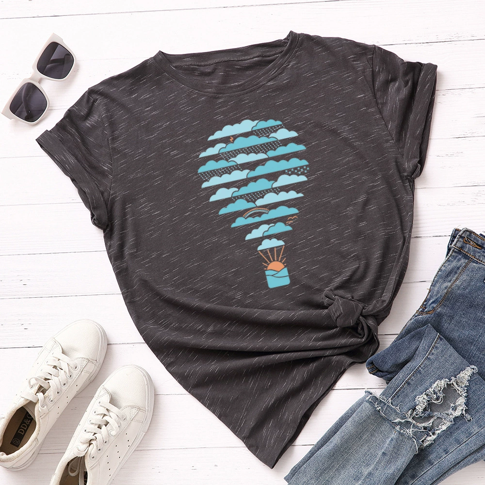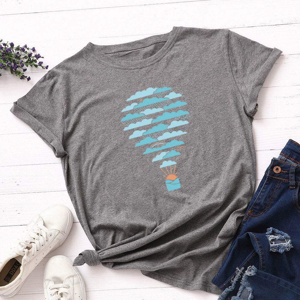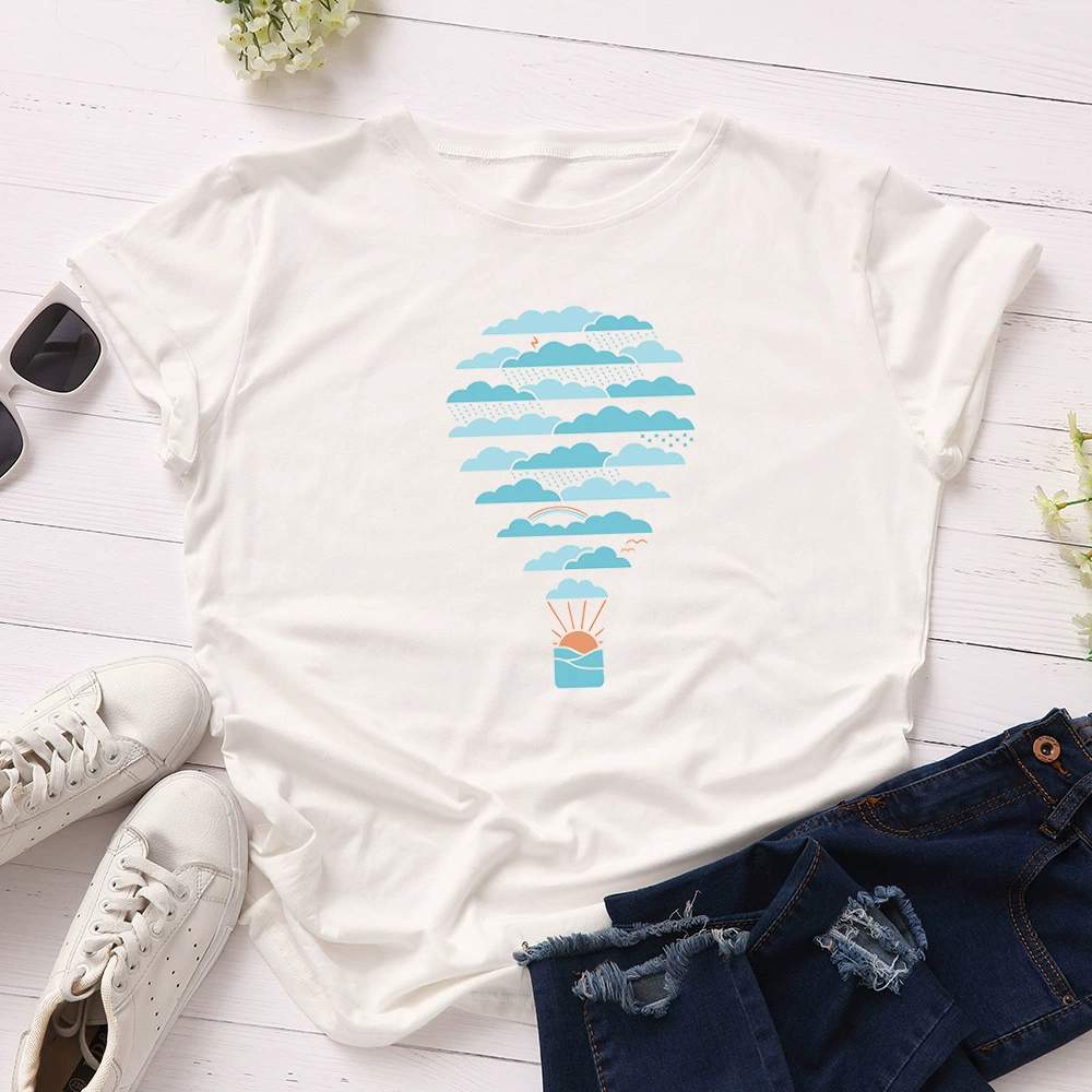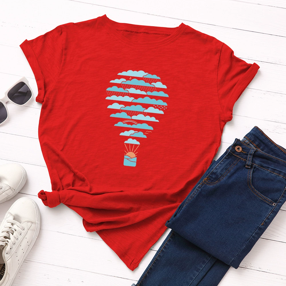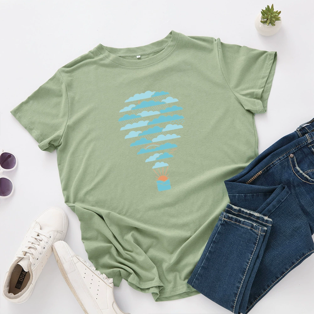 Женская хлопковая футболка с коротким рукавом JFUNCY, летняя футболка с принтом воздушного шара