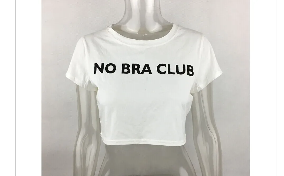 Женский укороченный топ с надписью NO BRA CLUB, белая и черная укор...