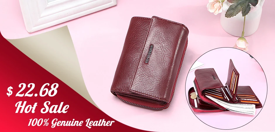 Женский кошелек из натуральной кожи Contact's, маленький бумажник для мелочи, кредитница, кредитница