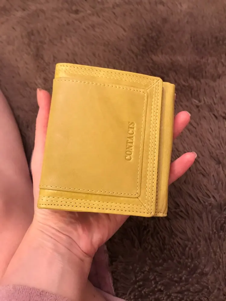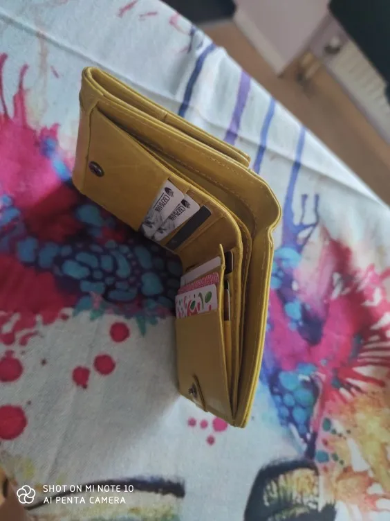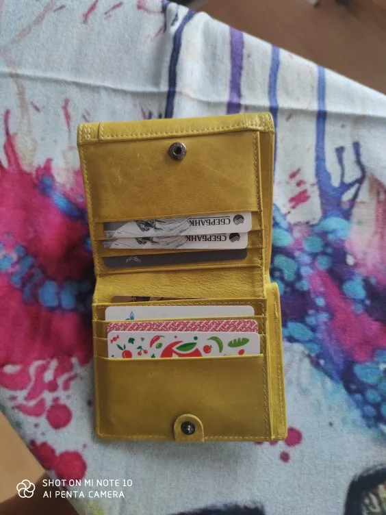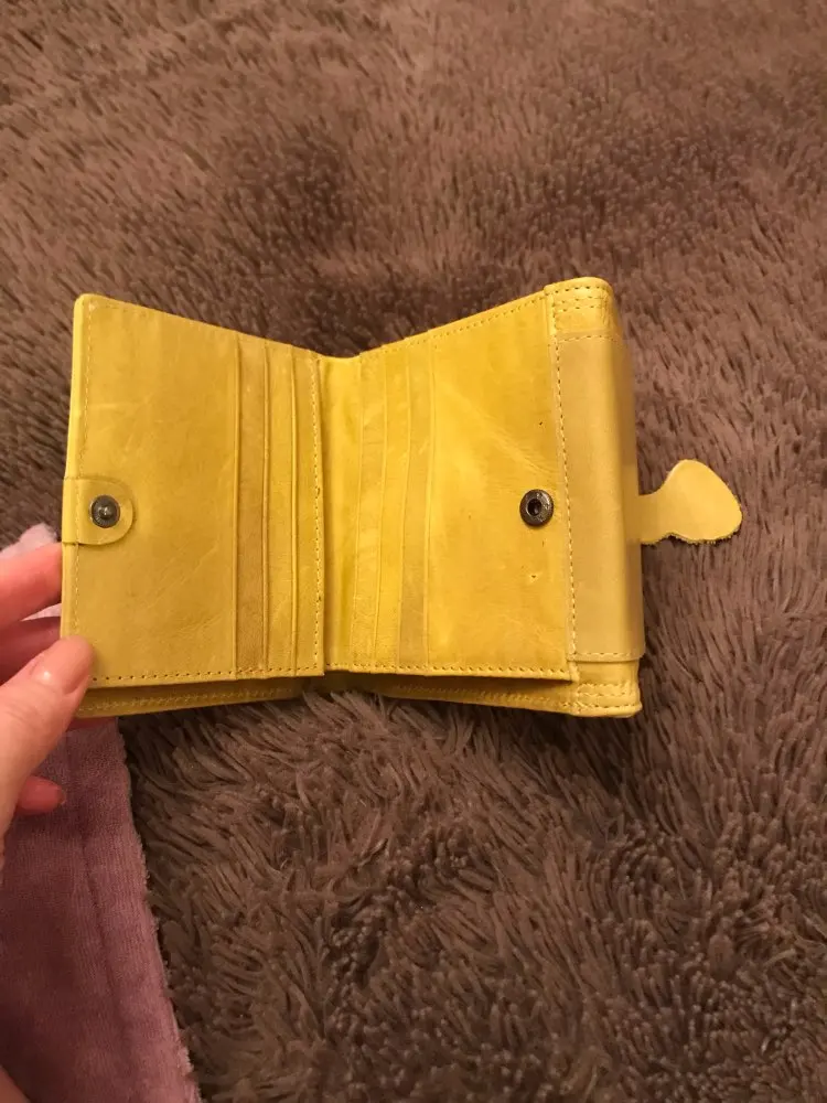 Кошелек отличный! Цвет как у продавца на фото, подкладка тоже яркая жёлтая) Отдел для монет вместительный и удобный. Запакован хорошо, в комплекте вместе с мешочком и комплиментом от продавца. Доставка нереально быстрая - 11 дней. Рекомендую!