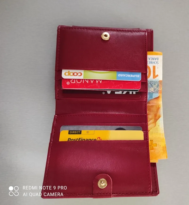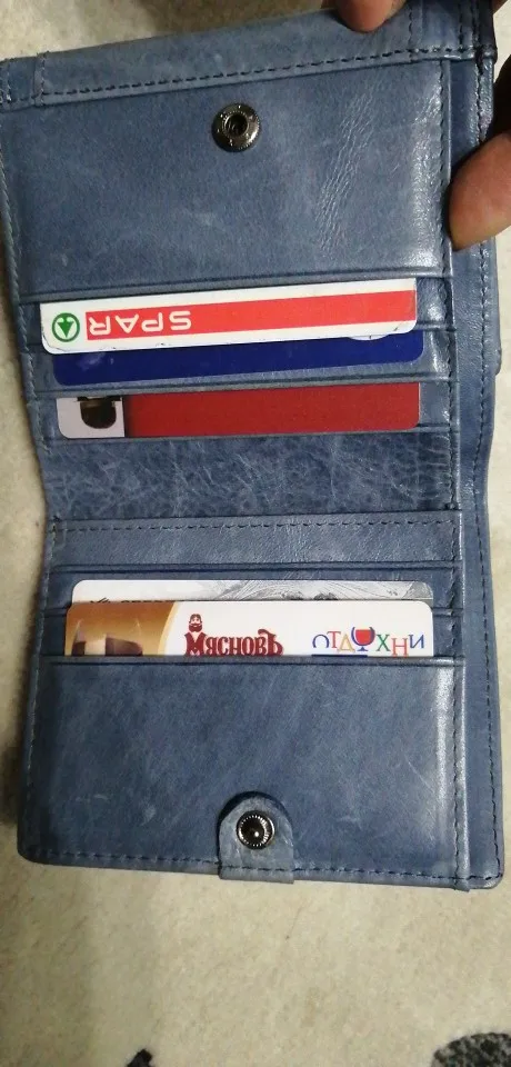 кошелек маленький, когда вложила в него все карточки он не закрывается.Не советую к заказу.