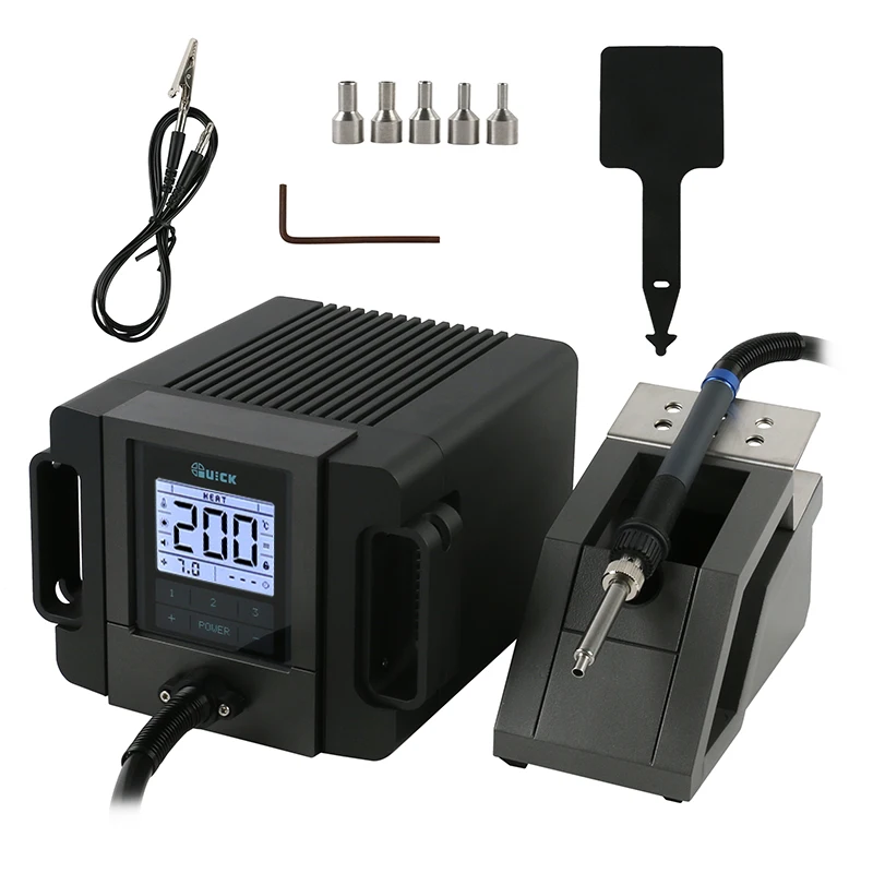 Паяльная станция Quick TR1100, бессвинцовый Термофен 200 Вт для ремонта микросхем печатных плат и микросхем телефонов