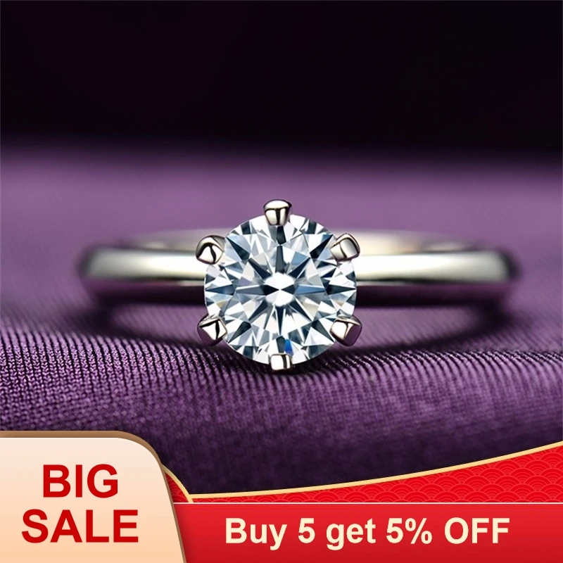 Модное 100% чистое Оригинальное Золотое кольцо с натуральным 2 карат белым пасьянсом кубическим цирконием обручальное кольцо для женщин