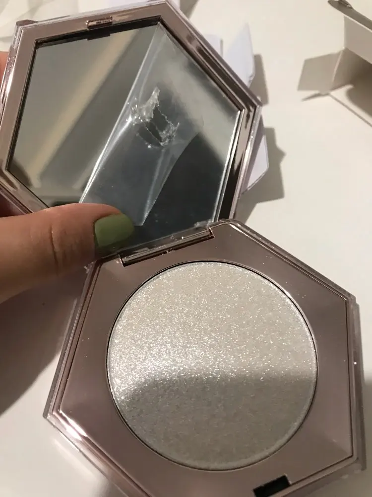 При первом нанесении есть блёстки, почему-то потом халайтер уже так не блестит затерается что-ли. Думала будет лучше, но увы у кого зеркало мутное отклейте плёнку