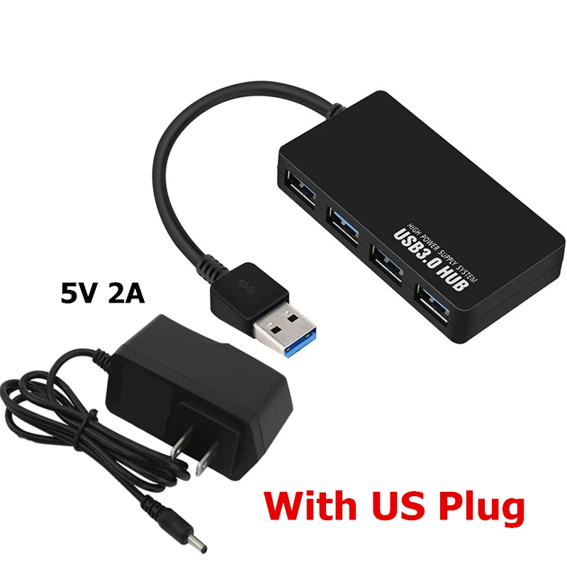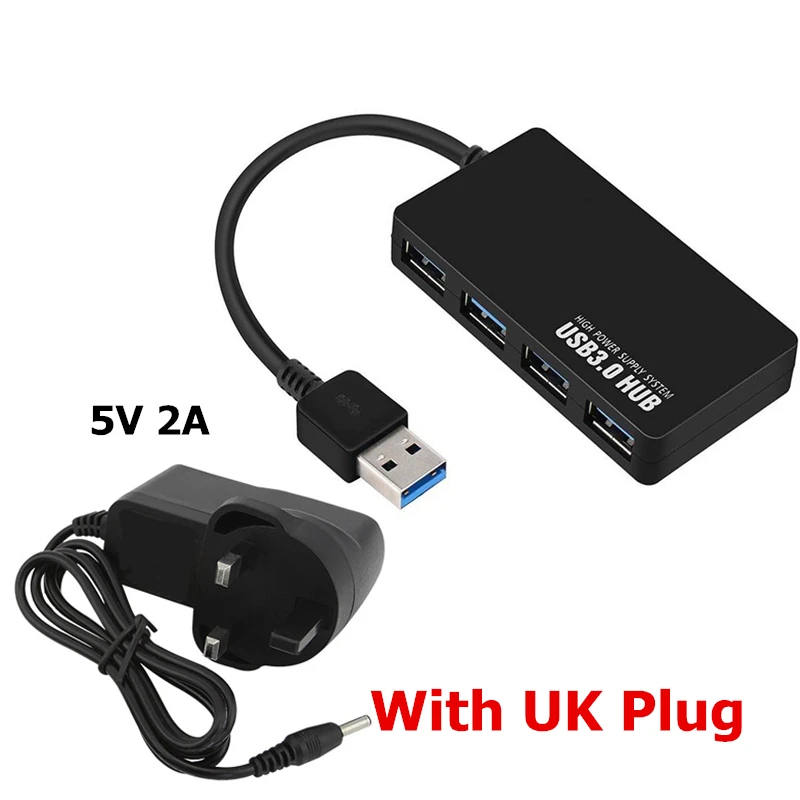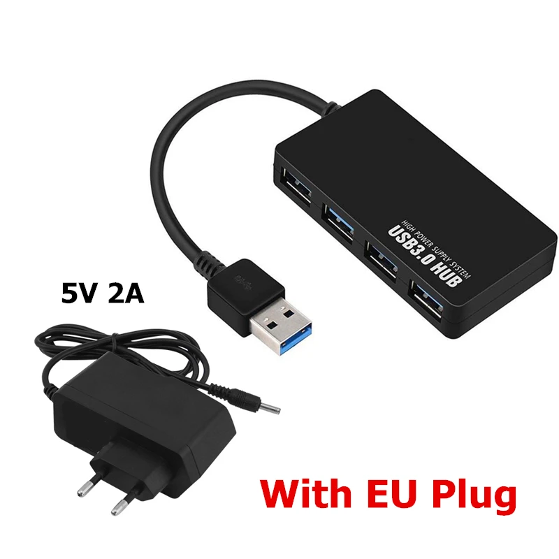 Концентратор USB-C с 4 портами OTG USB 3,0, адаптер питания постоянного тока 5 В для ЕСАвстралииСШАВеликобритании, разветвитель для Macbook, Xiaomi, аксессуары для ноутбуков, 3,0