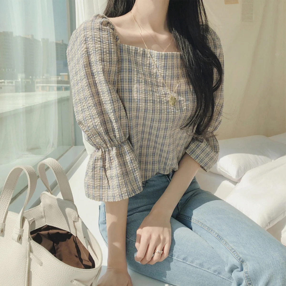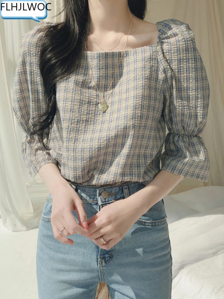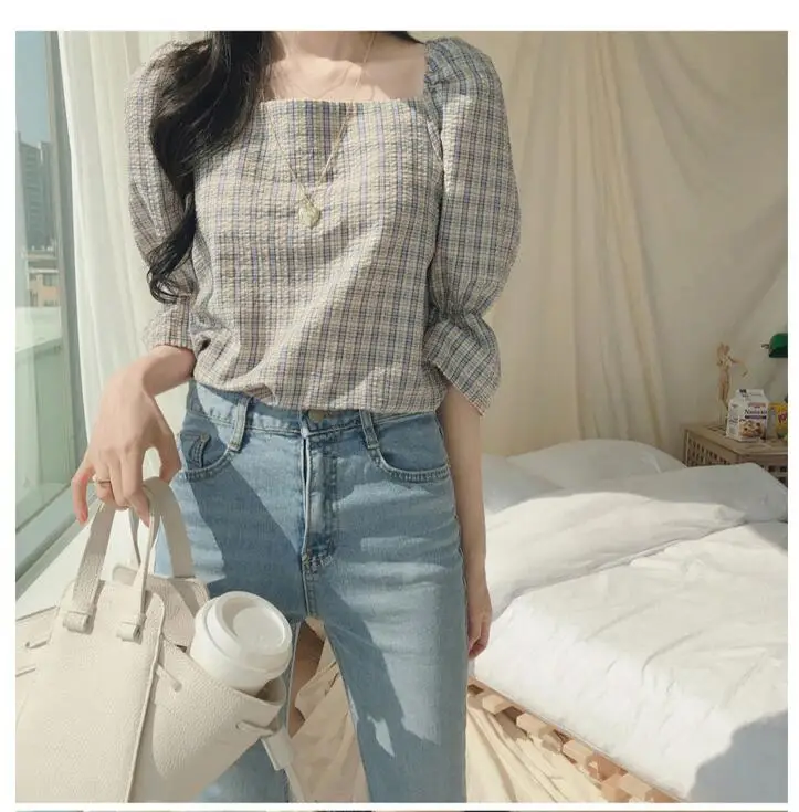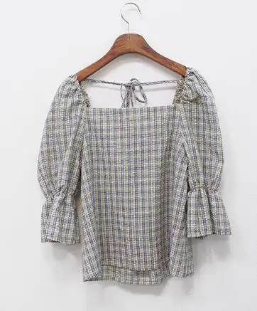 Милые милые женские топы, Лидер продаж, одежда в корейском и японском стиле, дизайнерский короткий топ для девушек в стиле преппи, синие, красные клетчатые рубашки, винтажные блузки