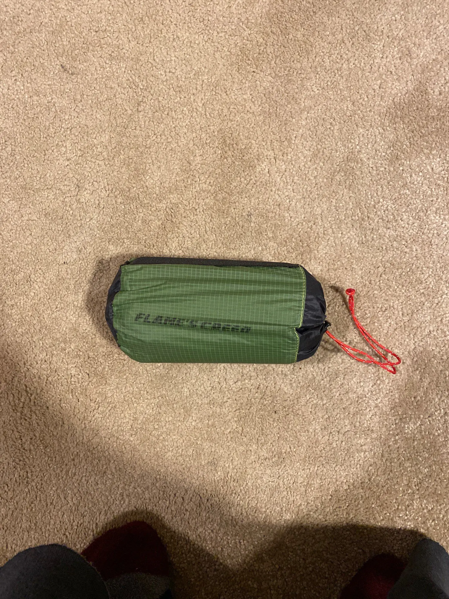 Выглядит хорошо, еще не использовали его, буду использовать его как аварийный брезент для кемпинга с биви. Вес, включая мешок для вещей 151 г, отличный.