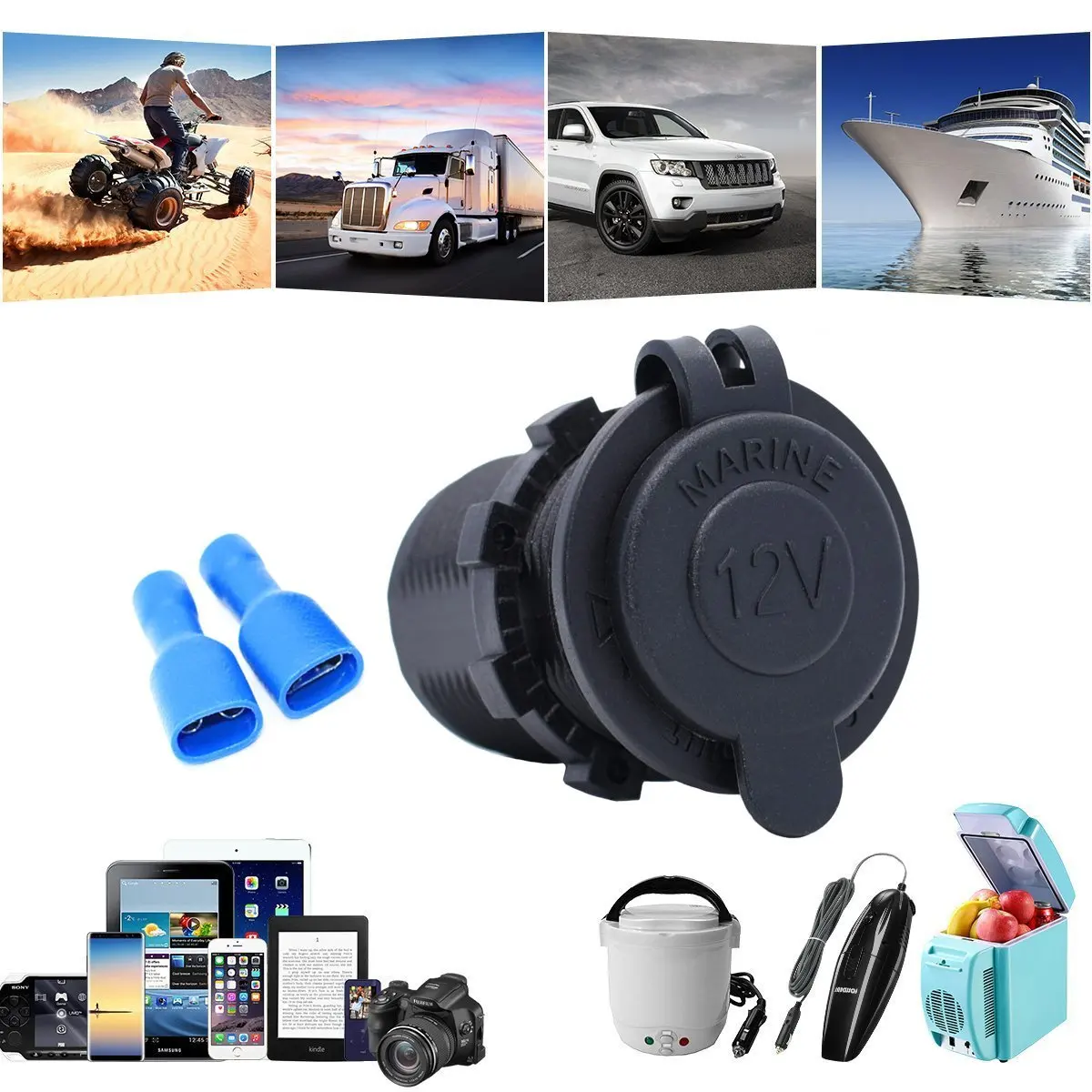 Этот товар является портативным и универсальным разъемом для автомобильного прикуривателя 12-24 В, который в основном изготовлен из прочного огнестойкого жесткого пластика для безопасного использования, И подходит для любых DC 12V 24V мотоциклов, лодок, езда косилки, трактора, автомобиль, и т. д.