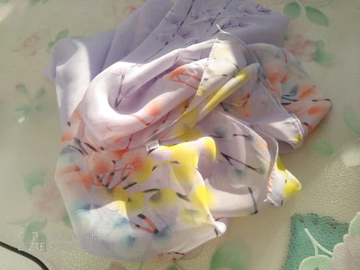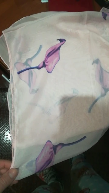 К сожалению цвет шарфика не такой яркий, как на фото у продавца. И поэтому, не смотря на красивые цветы, шарфик выглядит скучно. Плюс к этому в некоторых местах швы неровные. В общем оценка 4 из 5. Доставка до Эстонии 1,5 месяца. Положили в почтовый ящик.