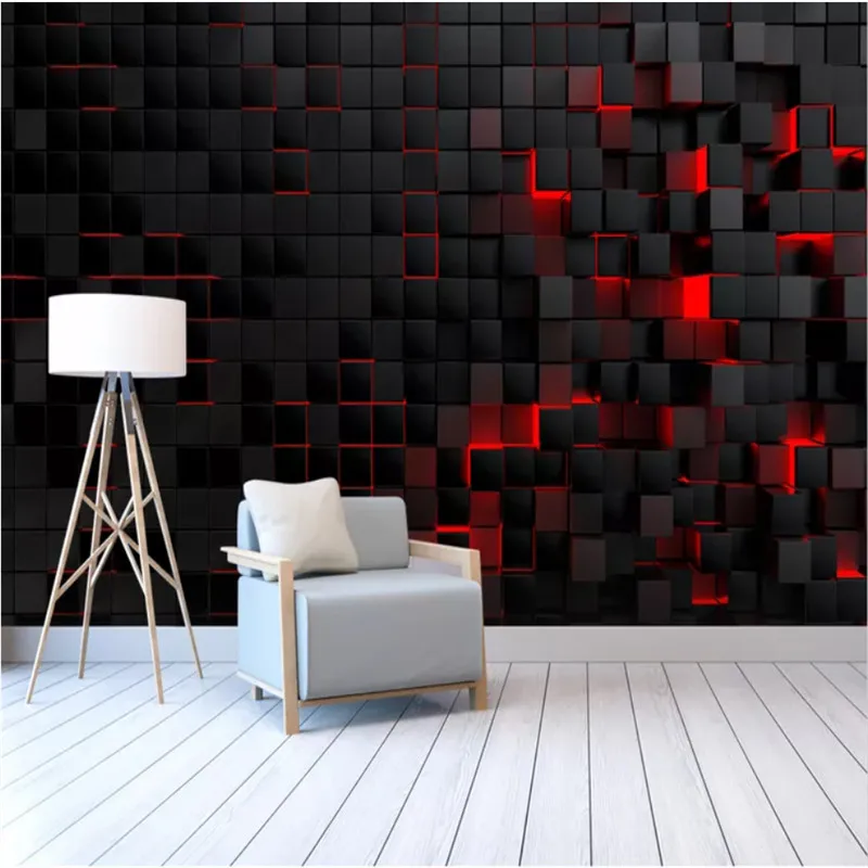 Пользовательские современные технологии настенная бумага s для гостиной настенная бумага 3D красный светильник блестящие черные кубики настенная бумага домашний декор