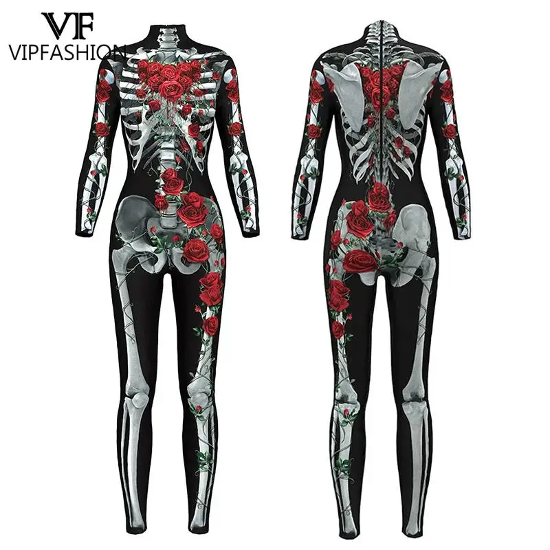 Новинка, модные товары VIP, комбинезоны с 3D принтом роз, костюмы на Хэллоуин для женщин, черный комбинезон, боди для вечерние
