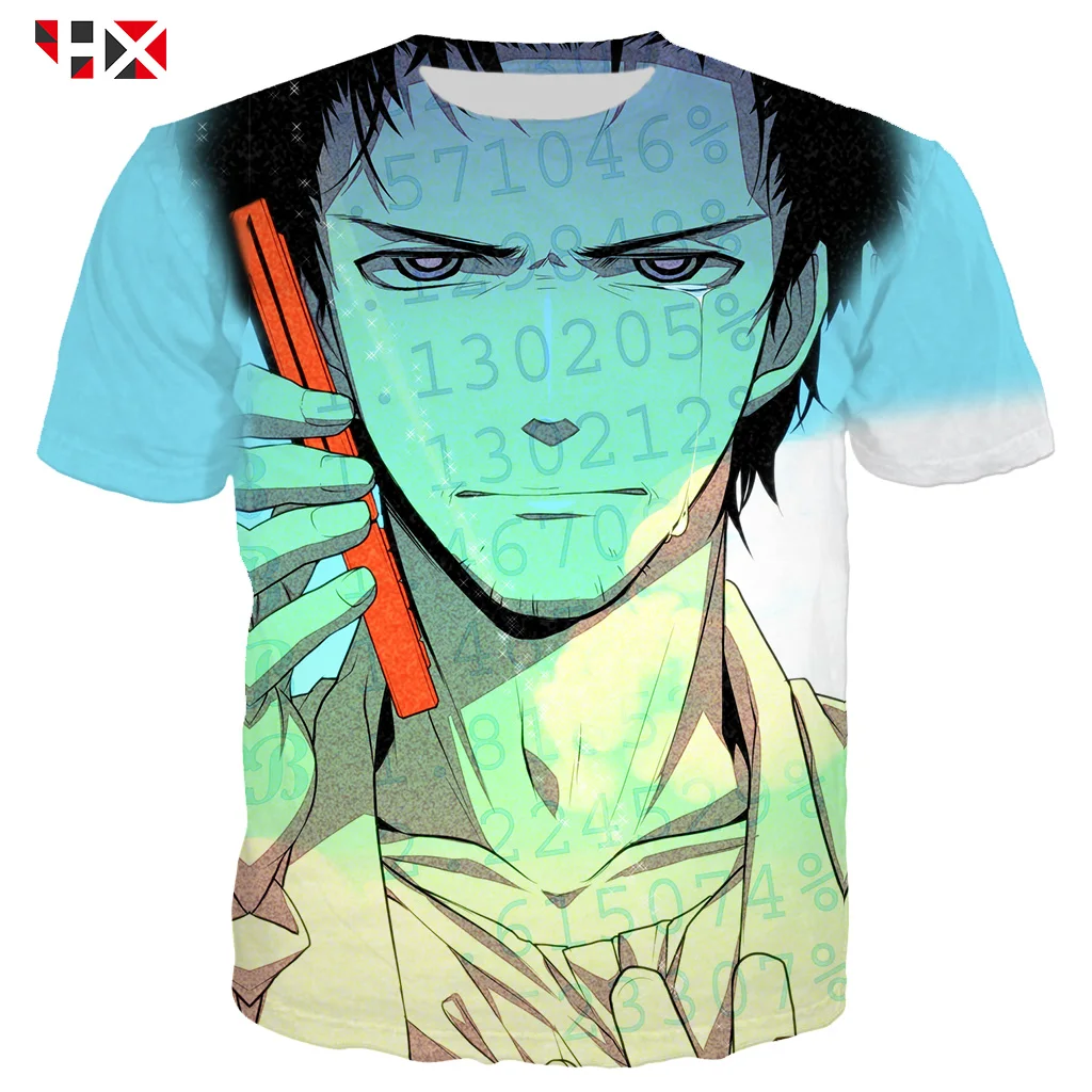 Футболка HX HX783 с коротким рукавом для мужчин и женщин, Повседневная рубашка с 3D принтом аниме ворота стейнса, уличный Топ, в стиле Харадзюку, на лето