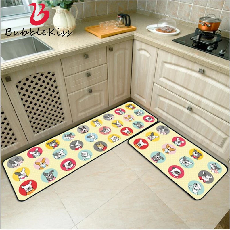 Милый мультяшный дизайнерский кухонный коврик Bubble Kiss с бульдогом, нескользящий мягкий напольный коврик, Полиэстеровые Коврики для кухни