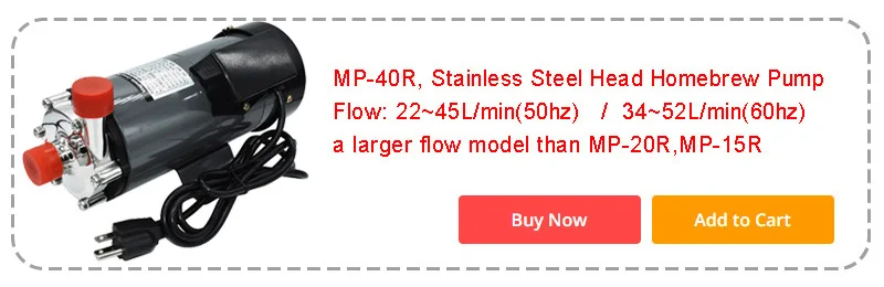 Домашний пивоваренный насос MP-20R 304, магнитная головка из нержавеющей стали, пищевой водяной насос, для домашнего пивоварения 34 дюйма BSPNPT, высокая температура 140C