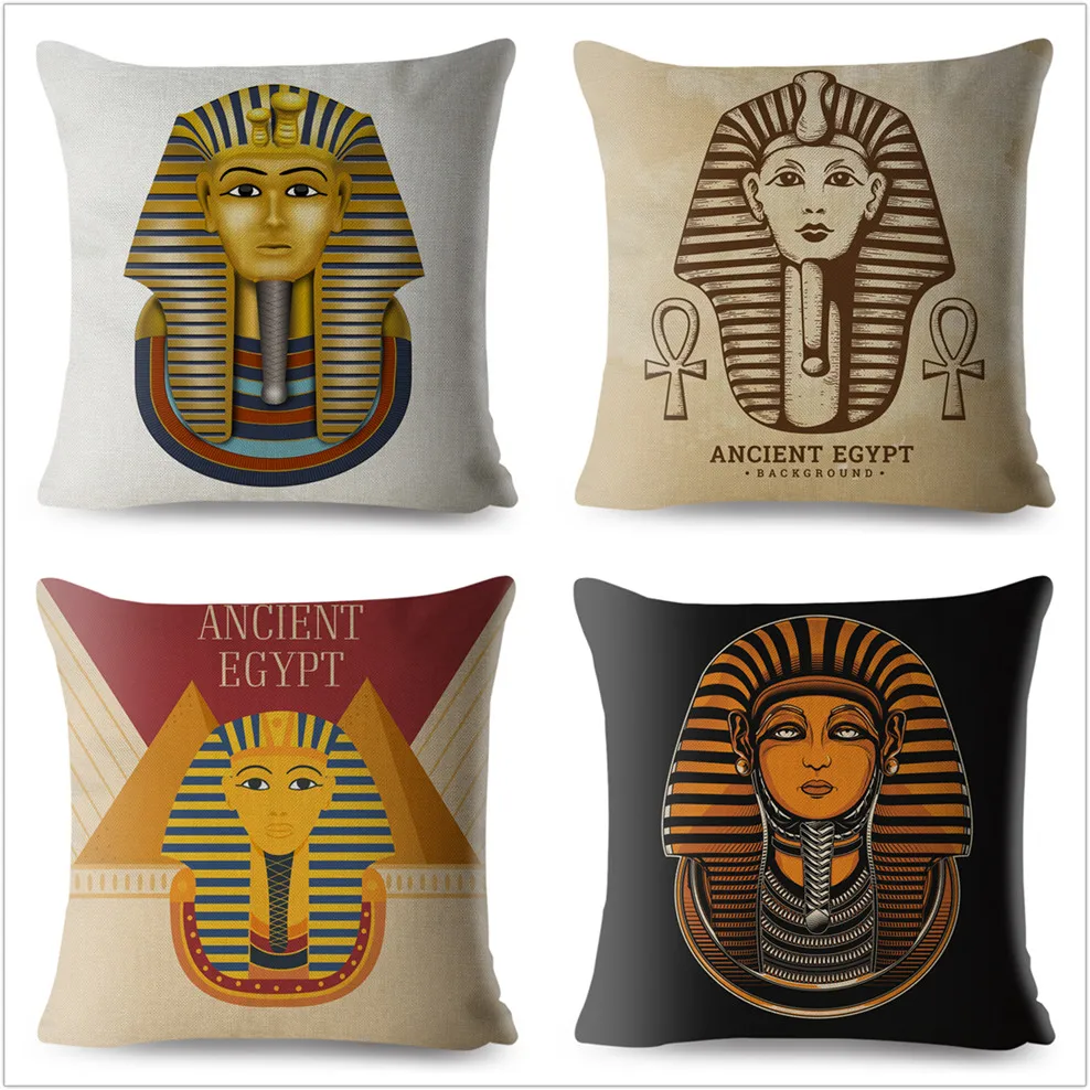Мультфильм Египет Фараон Тотем чехол для подушки с принтом бежевого льна наволочки 45*45 квадратные подушки Чехлы диван наволочка для домашнего декора