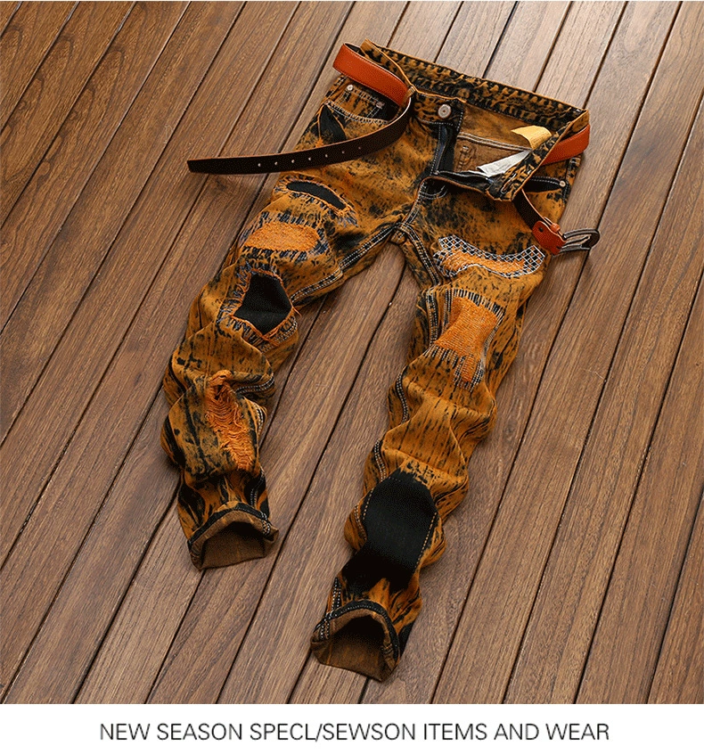 Мужские повседневные рваные джинсы, зауженные байкерские джинсы с эффектом потертости, плиссированные, мужские брюки из денима, размера плюс, 42