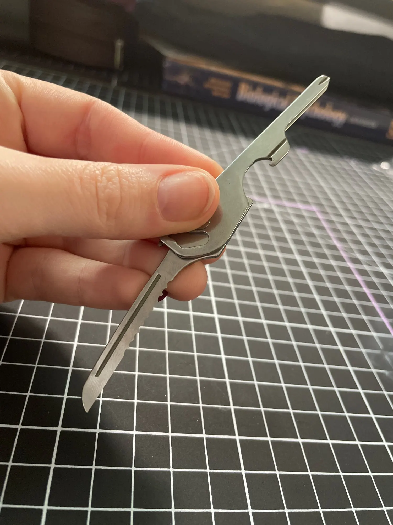 Дошло быстро комплектом с другими заказами на 11.11. Лезвие, конечно же, туповатое - это не проблема. размером чуть длиннее обычных ключей для цилиндрических замков. В отличие от похожих моделей, эта имеет защелку. Которая не позволит ему самопроизвольно открыться и потеряться. Брать можно.