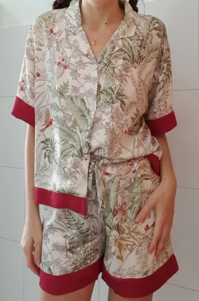 Пижама женская атласная с коротким рукавом и отложным воротником, для дома