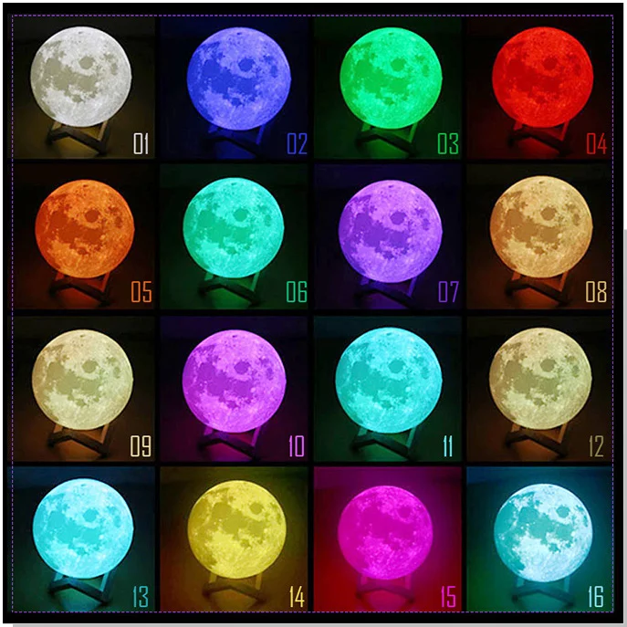 Перезаряжаемая Лунная лампа 2 16 цветов, светильник 3D, сенсорный выключатель, лампа с принтом, ночник для спальни, книжный шкаф, креативные подарки