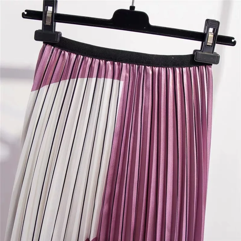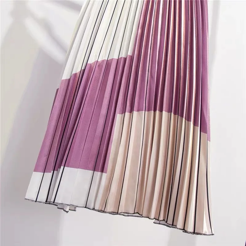 Юбка плиссированная Женская, а-силуэта, контрастных цветов, до середины икры