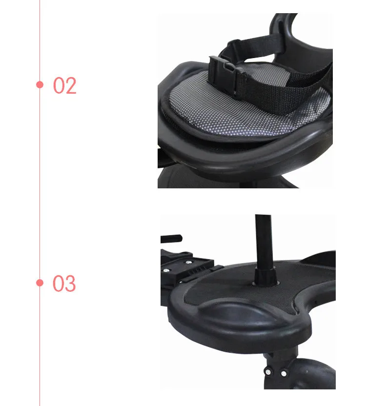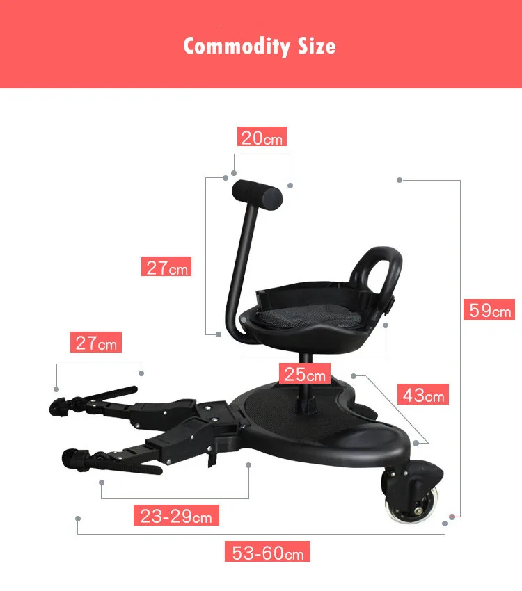 Скейтборд с сиденьем для 2 в 1 плюс коляски универсальная езда на малыша Совместимость с 95% коляски | Подушки | Мигающие светодиодные колеса | Крюк на адаптере.Материал: ПП и нержавеющая стальМатериал колес: ПВХ и ПУВес изделия: 4,6 кг (с сиденьем); 3,5 кг (без сиденья)Вес медведя: 25 кгПерегрузка: 50 кгВозраст: 10 месяцев-8 летРазмер продукта: 60x43x59cmРазмер упаковки: 45x23x38cmПрименимость: Универсальная детская коляска 95%. Если вы не уверены, подходит ли она для вашей коляски, пожалуйста, проверьте у нас перед размещением заказа. Заранее спасибо!