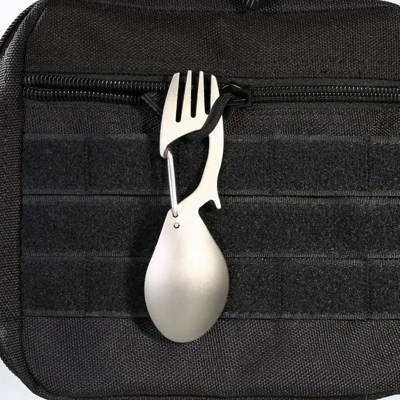 Многофункциональная вилка-ложка 3 в 1, открывалка для бутылок с карабином, посуда для кемпинга и пикника на открытом воздухе, титановая вилка-ложка