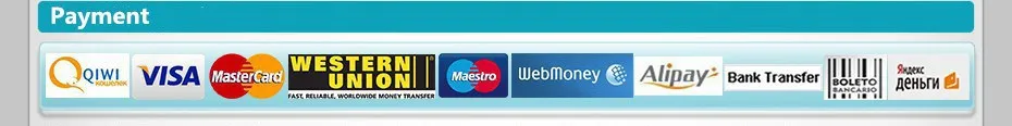 Мы принимаемКредитная карта, Western Union, TT.Лучший способ-это прямой онлайн-платеж, вы можете выбрать наиболее удобный для Вас способ. Если вы хотите другие условия оплаты, пожалуйста, сообщите нам, прежде чем делать заказ.• Оплата должна быть произведена в течение 7 дней с момента заказа. Если вы не можете проверить сразу после закрытия аукциона, пожалуйста, подождите несколько минут и повторите попытку.• Убедитесь, что вы завершили всю подробную информацию, такую как контактное лицо, адрес, почтовый индекс и номер телефона при заполнении информации вашего покупателя.• Для защиты ваших интересов ваш платеж будет временно удерживаться Aliexpress и не будет выпущен до тех пор, пока вы не получите свой заказ и не будете удовлетворены им.