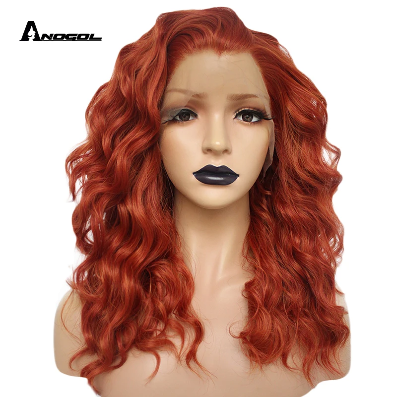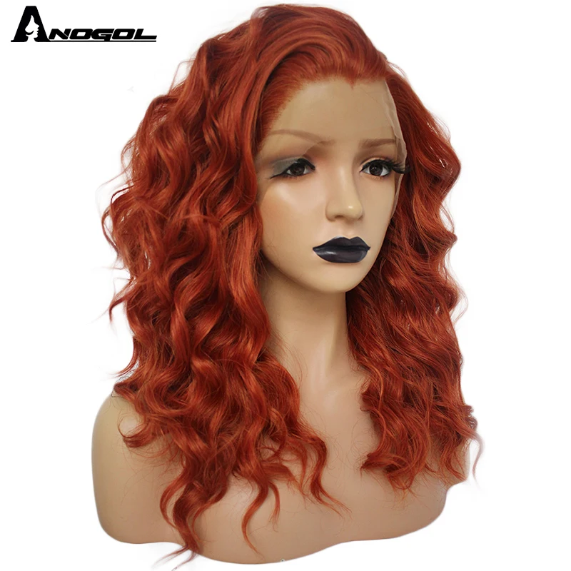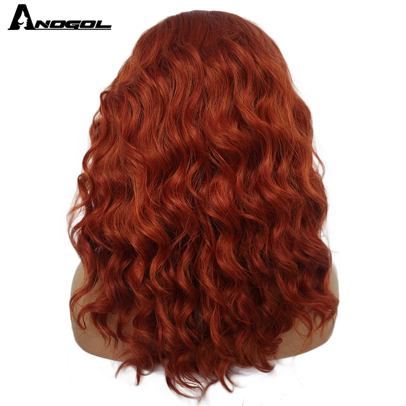 Anogol парик на сетке спереди бронзирующий Auburn оранжевый высокотемпературное волокно средние и глубокие волнистые волосы парики синтетические для женщин Бесплатный парик шапочка
