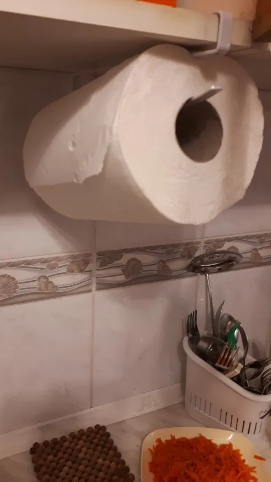 прикольная штука, экономит место, есть отверстие для крепления к полке, по желанию, но и так удобно подвешивать рулон