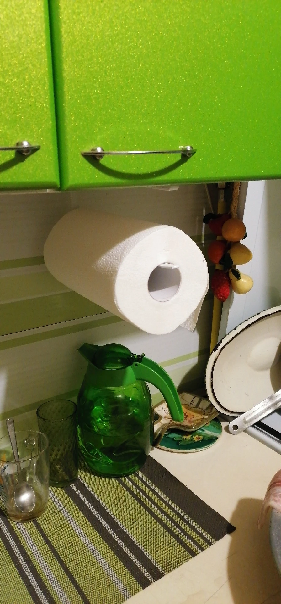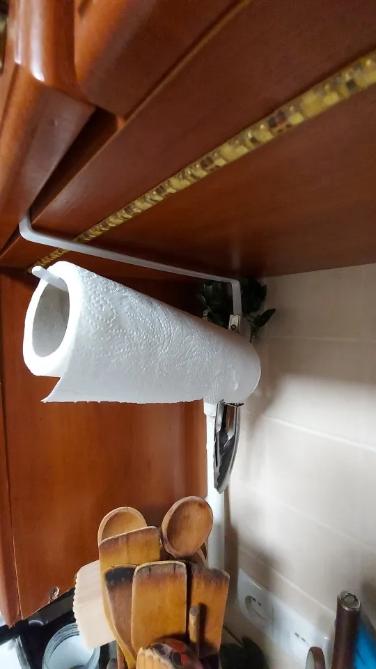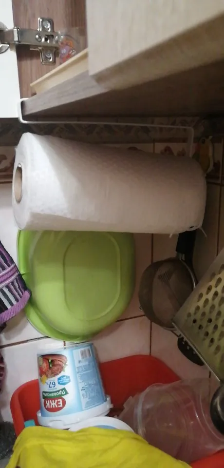 Отличная штука, очень практично, как я и ожидала. Из МИНУСОВ: На полке стандартной толщины сидит не плотно (двигается), под тяжестью стандартного рулона полотенец прогибается, немного мешает плотному закрытию дверцы шкафчика (что логично) ПЛЮСЫ: это правда очень удобно, экономит место и делает кухню эргономичнее
