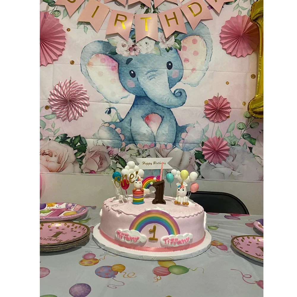Фон для фотосъемки с изображением слона и детского душа с изображением милых животных и цветов, фон для фотосъемки с изображением слона на день рождения для девочек