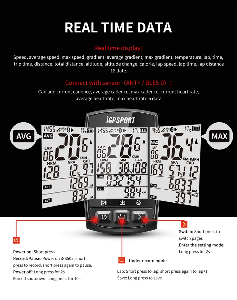 Велокомпьютер iGPSPORT iGS50S ANT +, Bluetooth 5,0, водонепроницаемость IPX7, беспроводной цифровой велосипедный секундомер, спидометр, Измерение частоты педалирования