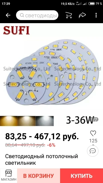 Страна: RU Emitting Color: Warm White 3000K Wattage: 12W 85mm Доставка: Seller's Shipping Method 23.02.2021