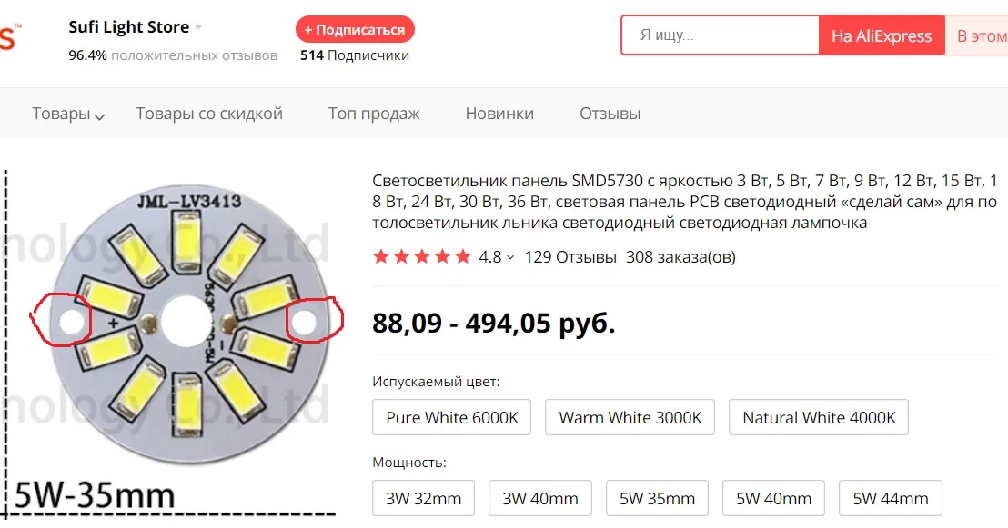 Страна: LT Emitting Color: Natural White 4000K Wattage: 5W 40mm Доставка: Cainiao Super Economy 07.01.2021