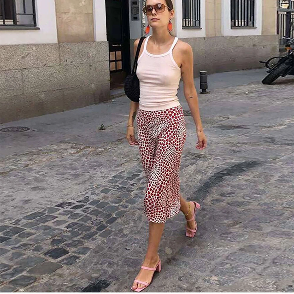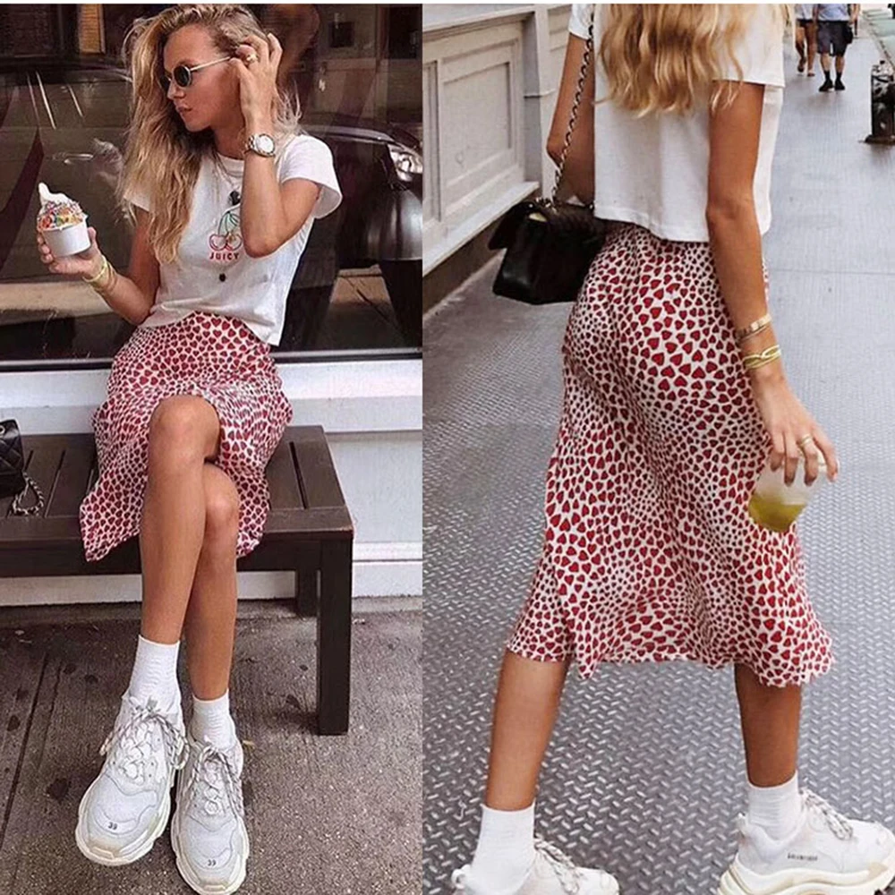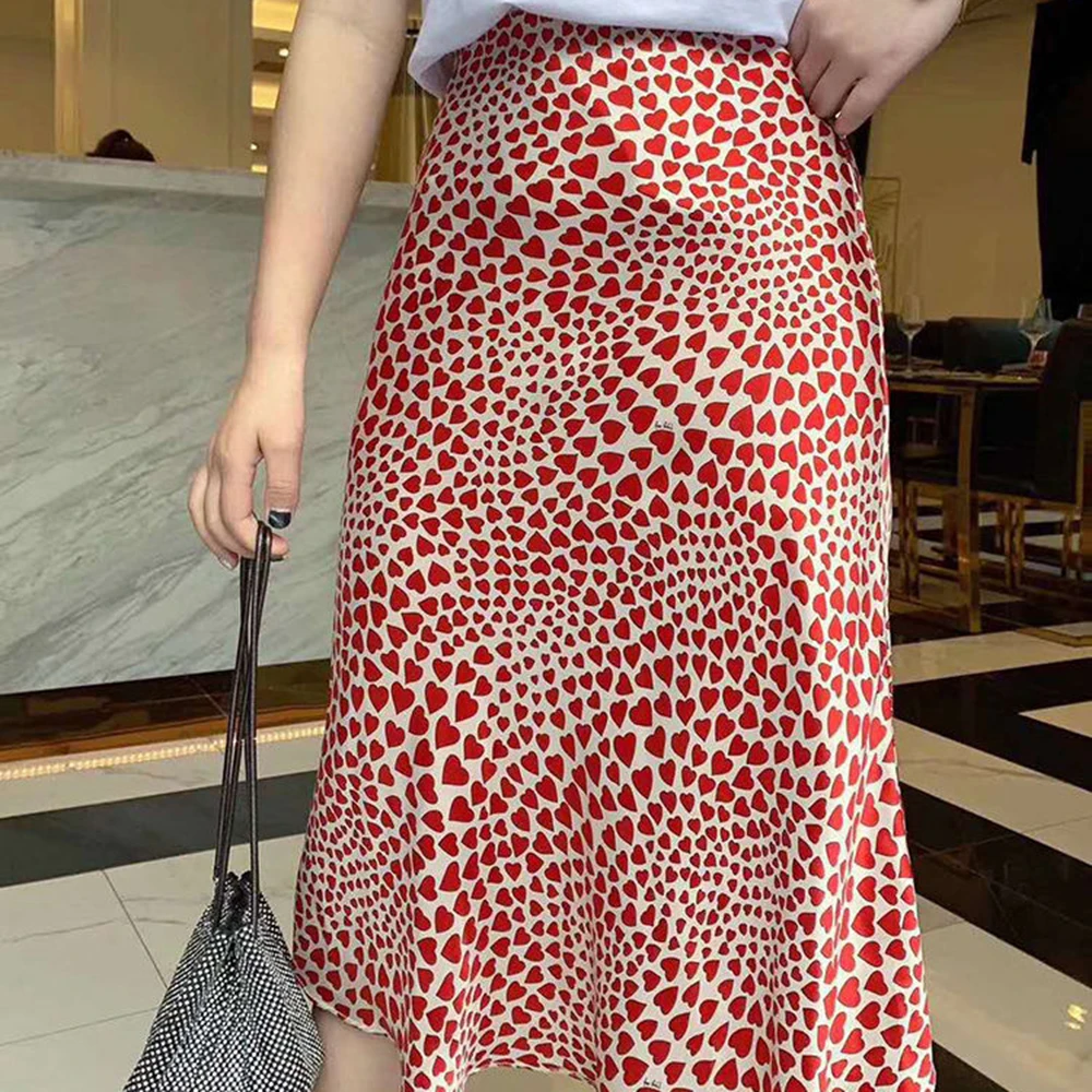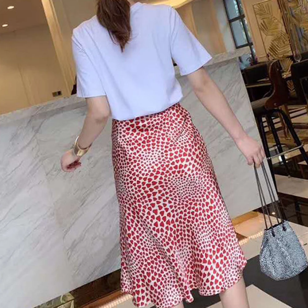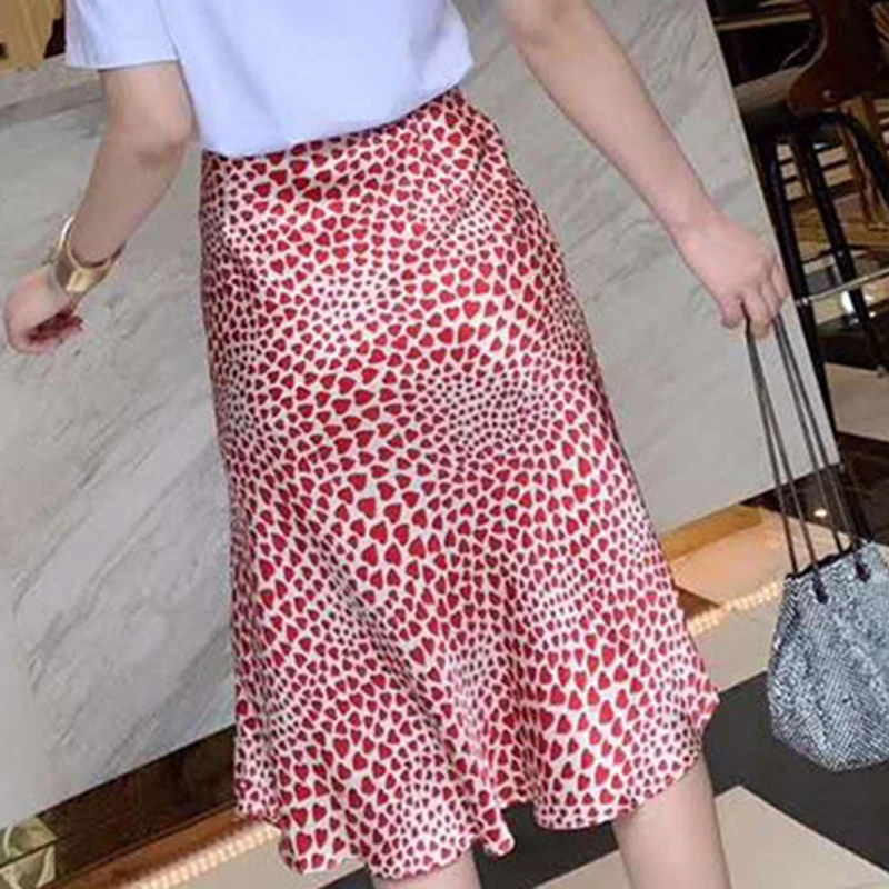 Юбка-карандаш Женская шелковая с принтом в виде сердца, красная, леопардовая, богемная, юбка с тонкой талией