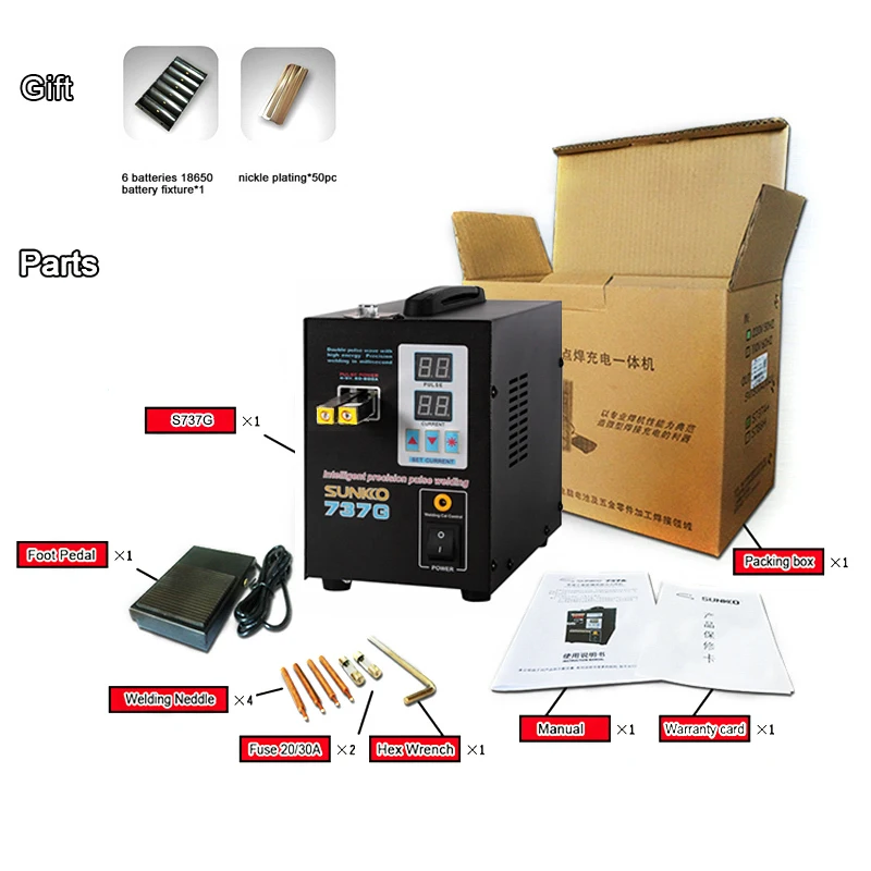 Точечный сварочный аппарат SUNKKO, 737 г, 18650 кВт, цифровой дисплей, для аккумуляторной батареи, сварочные аппараты с двойным импульсом