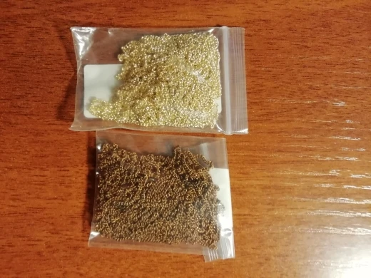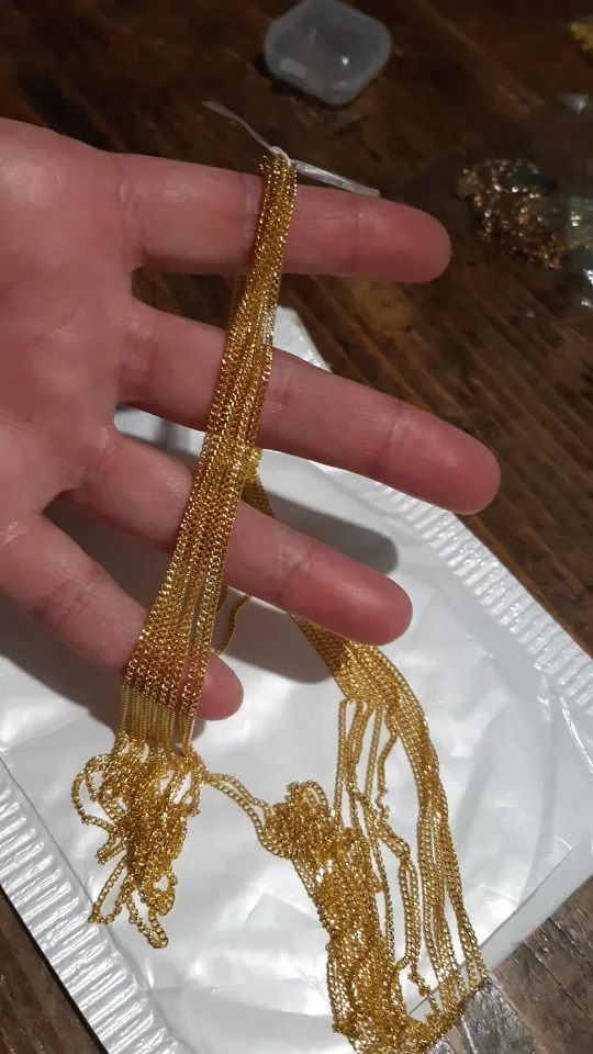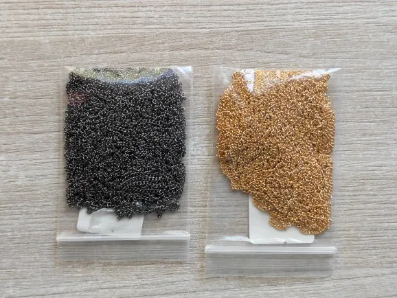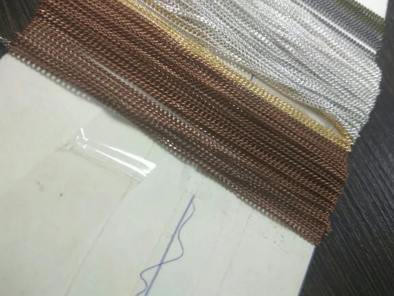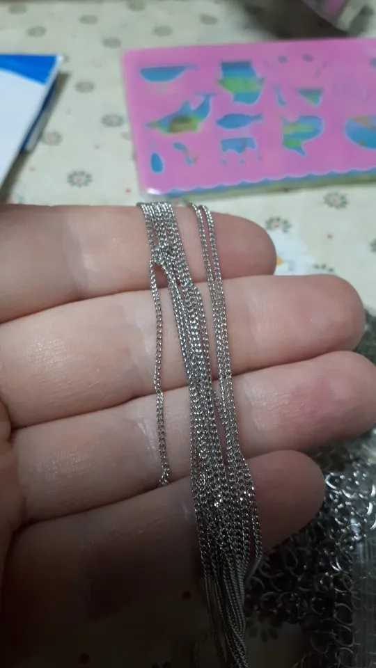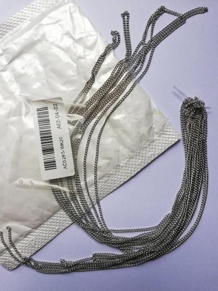 Хорошие цепочки, брала в двух цветах. По длине - чуть более 5 м. В одном цвете вместо одного куска было два - 2 и 3 с небольшим метра, для моих целей некритично. Стойкость покрытия пока не проверяла