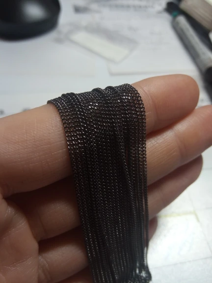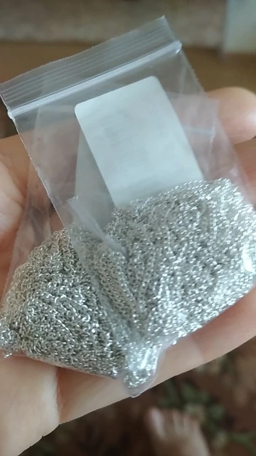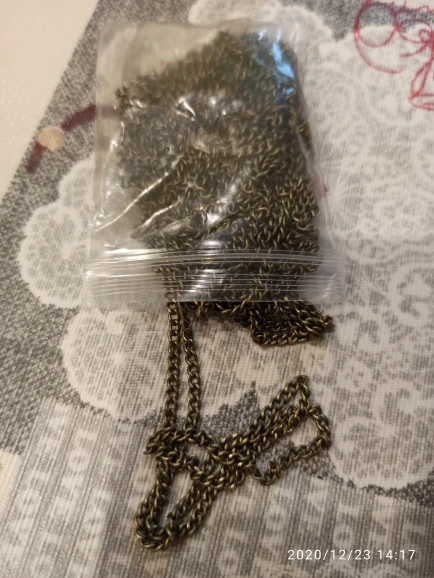 цепочка пришла с пятнами, потемнения или окислениями(((, продавец добросовестный, вернул деньги, так что рекомендую! раньше брала такую цепочку в другом цвете, всё хорошо, товар хороший, если без брака. Но данную продукцию в этом цвете можно использовать только отдельные малюсенькие фрагменты, раз пришёл некачественный отрез(((