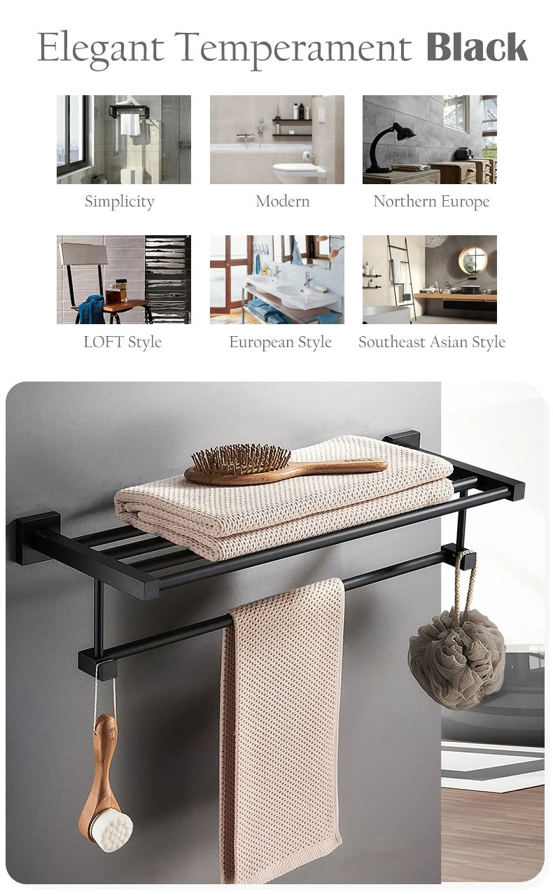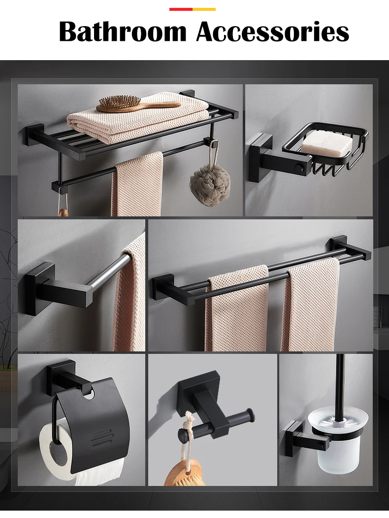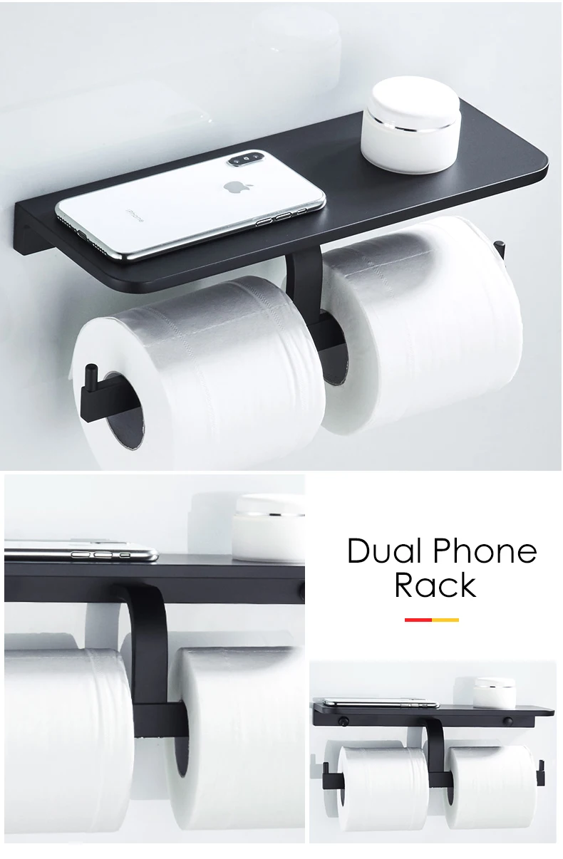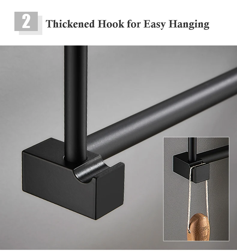 Двойная вешалка для полотенец, 55 см, матовая черная вешалка для полотенец, алюминиевые аксессуары для ванной комнаты, вешалка для полотенец, ершик для унитаза
