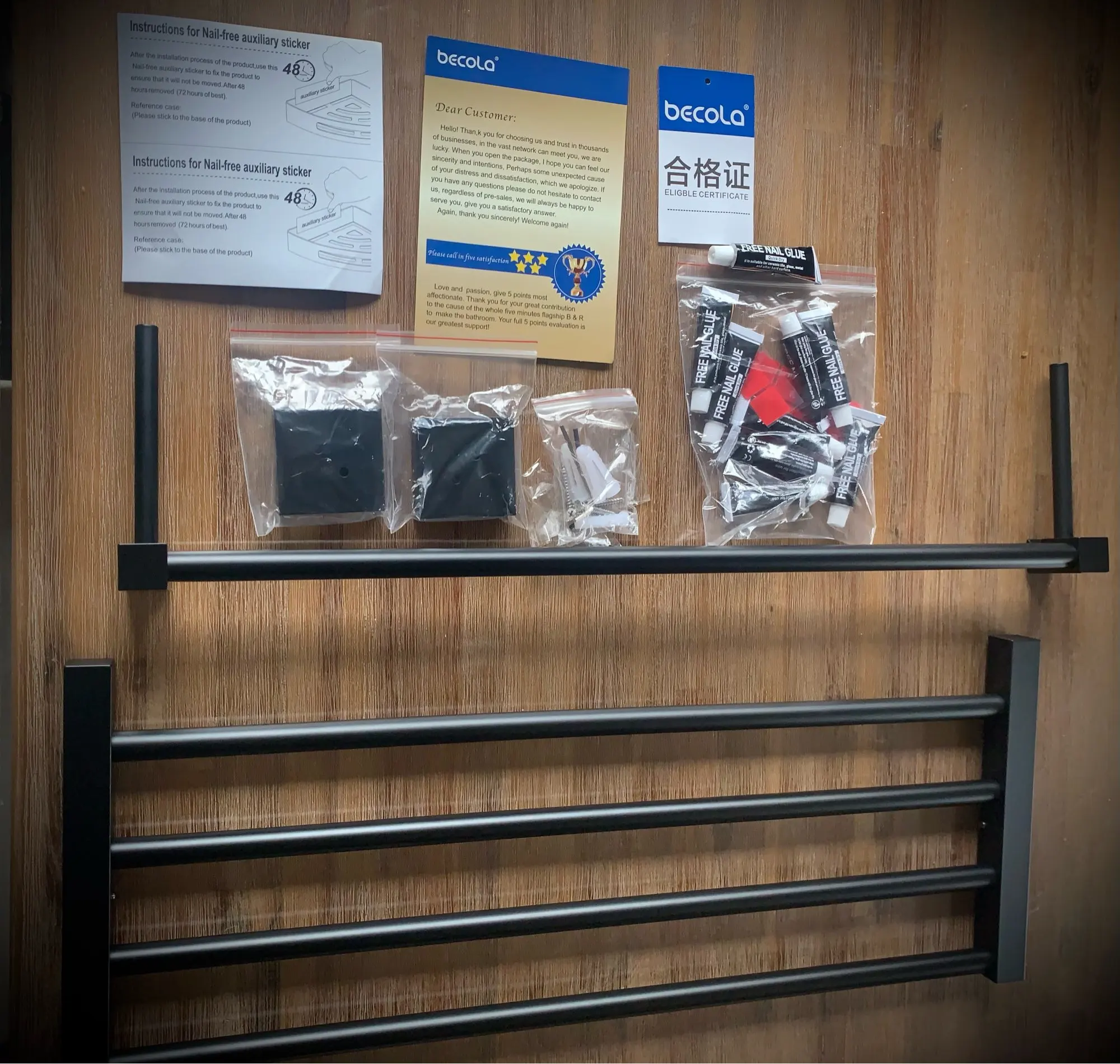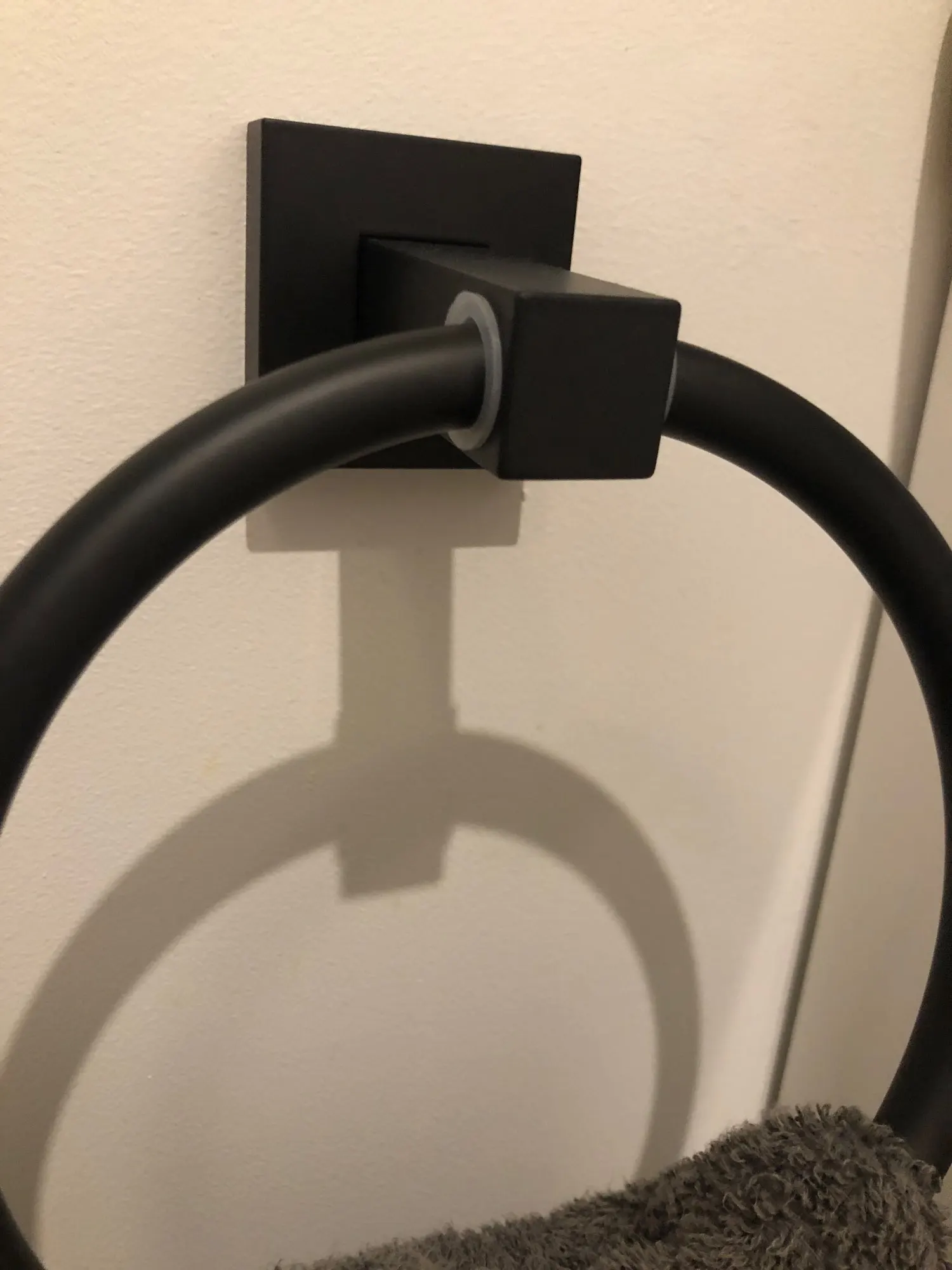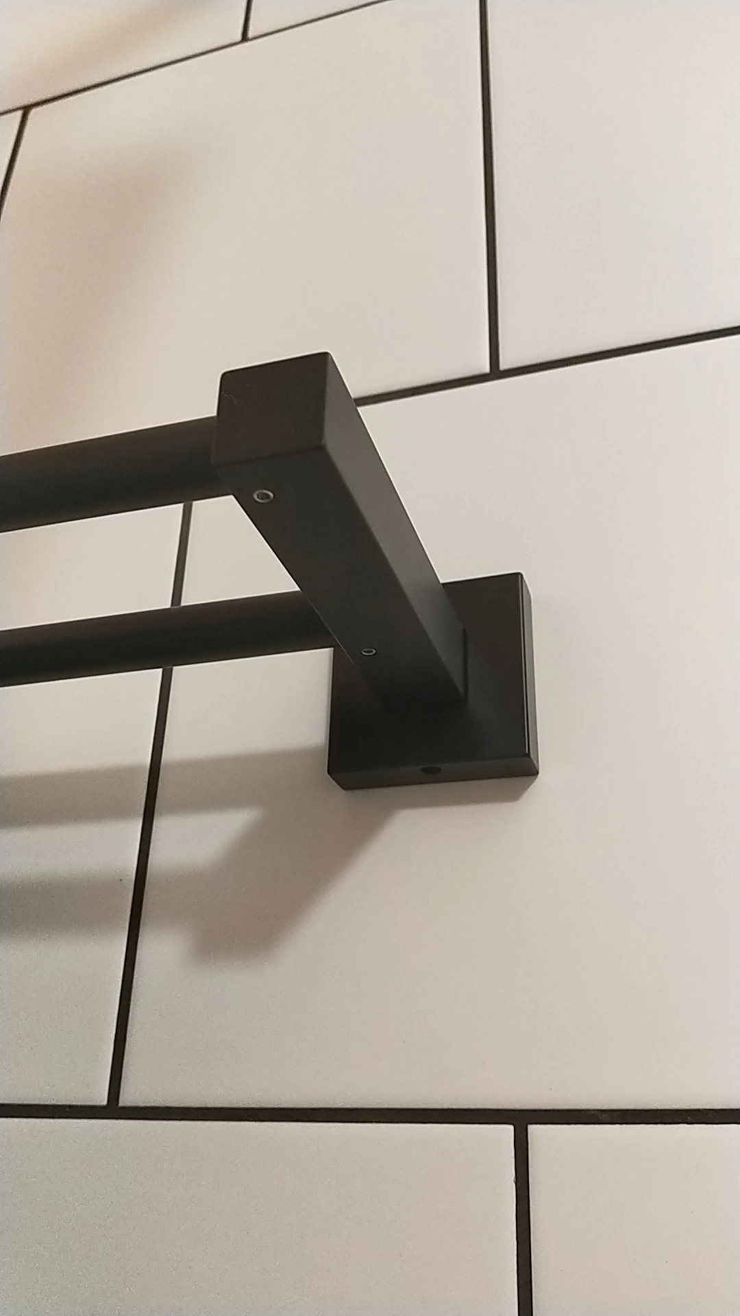 Шикарный полотенцедержатель! Скрытая система крепления к стене, в комплекте саморезы, дюбеля и шестигранник для тех, у кого нет инструмента. Также есть двусторонний 3м-ский скотч для тех, кто не хочет сверлить стену. Очень приятный на ощупь, благородный матовый цвет. Теперь хочется полный набор таких аксессуаров для ванной комнаты. Стоит своих денег!