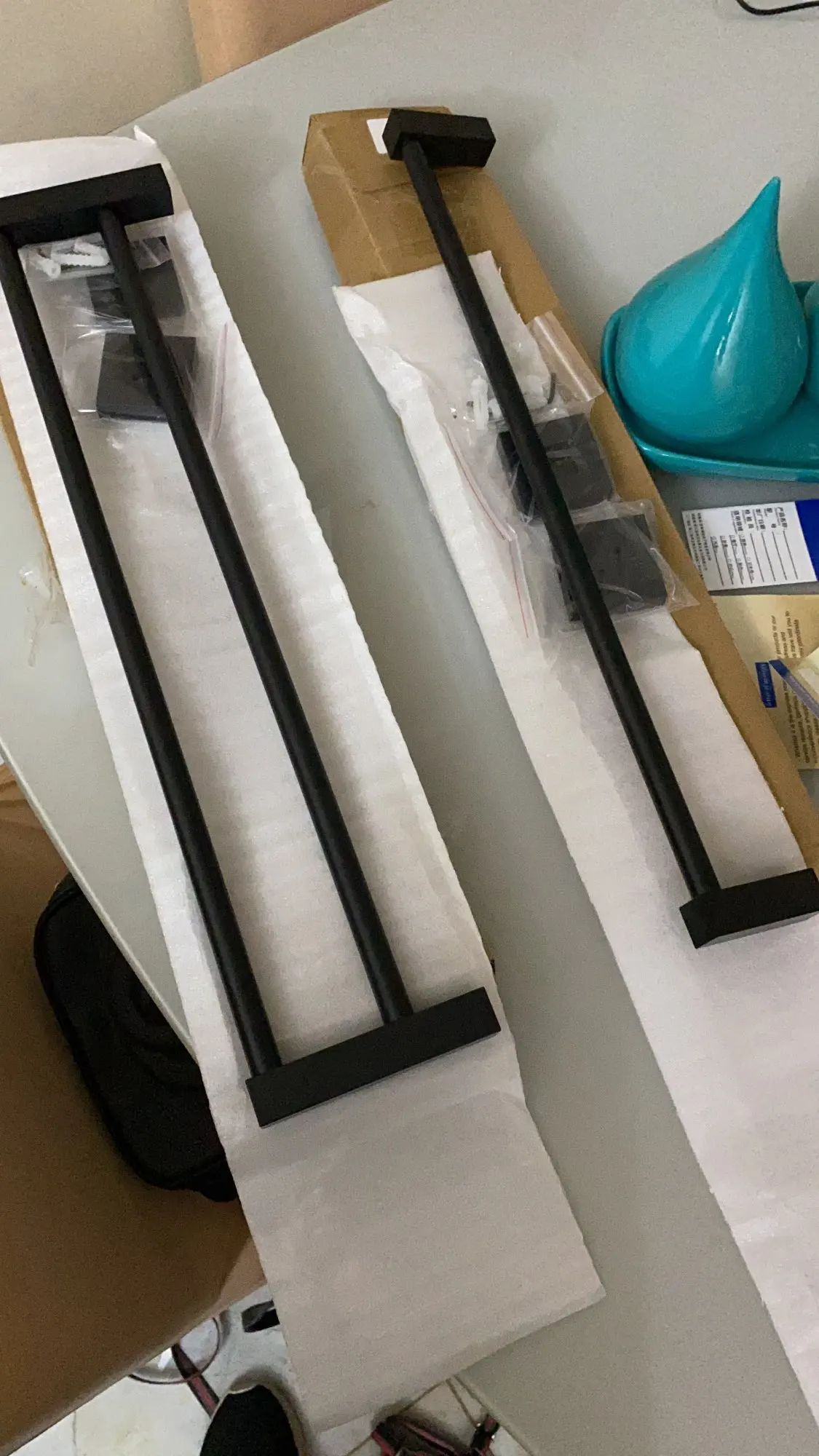 Пришло очень быстро, буквально недели за 2, не смотря на приближающиеся праздники. Упаковано хорошо, все прошло целое. Полка немного разная по высоте где штанга, но это незначительно. Материал качественный, держатели под полотенца очень красивые. Спасибо продавцу!