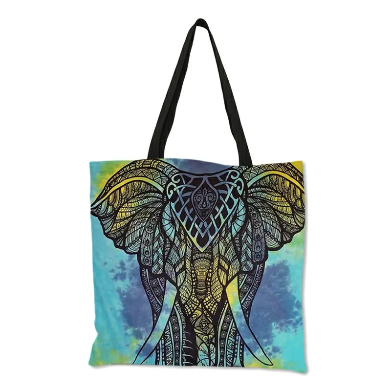 Индивидуальная Льняная сумка-тоут с принтом слона мандалы для женщин, модные многоразовые сумки для покупок, дорожные школьные сумки через плечо с принтом