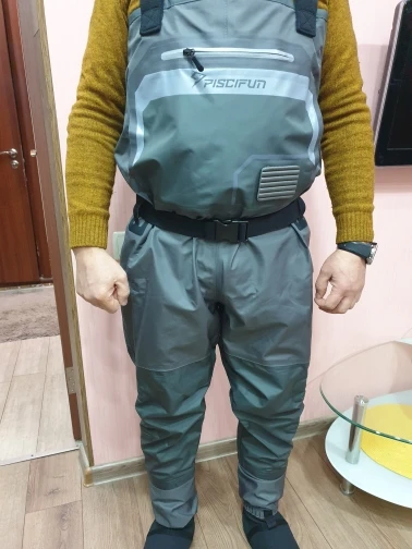 Ооочень быстрая доставка, до Спб 3 дня курьером в квартиру. Продавец красавчик, на все вопросы ответил быстро и более точно посоветовал размер по моим размерам! Теперь про сами вейдерсы: качество отличное, швы ровные и аккуратные, на рост 176 и вес 100кг с животиком 110см подошли идеально. На размер ноги 28см, впритык, чуть-чуть тянет чулок, но это не кретично,потом подрастянутся. На шаговый шов 80см, спокойно можно приседать, ничего не тянет, комфортно. Ткань действительно дышит, за пол-часа в квартире на зимнее термобелье чуть тепло было ниже пояса, сверху не потело. Ботинки заказывали в др. магазине 46р. с толстым носком подошли отлично. Вообщем рекомендую продавца, магазин и вейдерсы. Спасибо отдельно за подарок-чехол для т/ф и за мега быструю доставку!!! Надеюсь мой отзыв поможет кому-нибудь с выбором размера!)