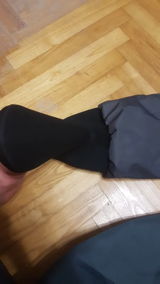 Высше колени пошито как мешок, носок сшитый без пятки, все остальное на отличном уровне