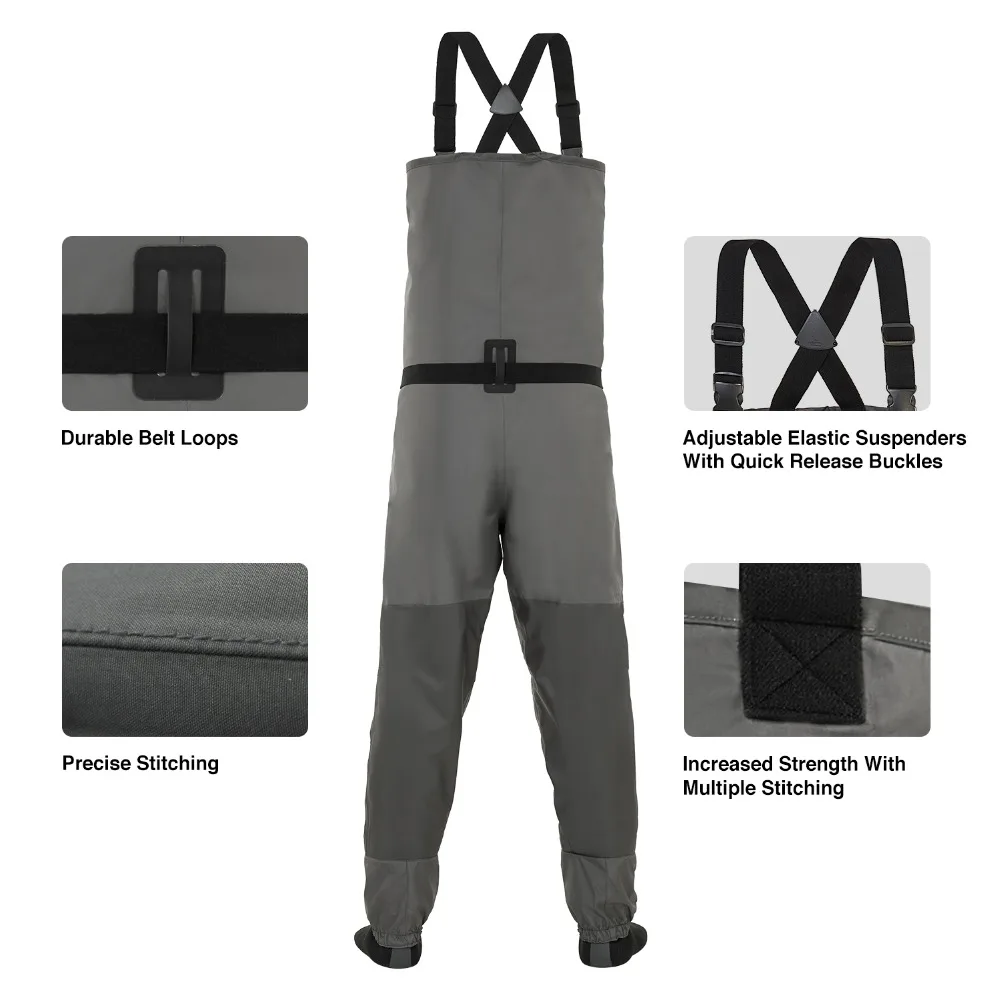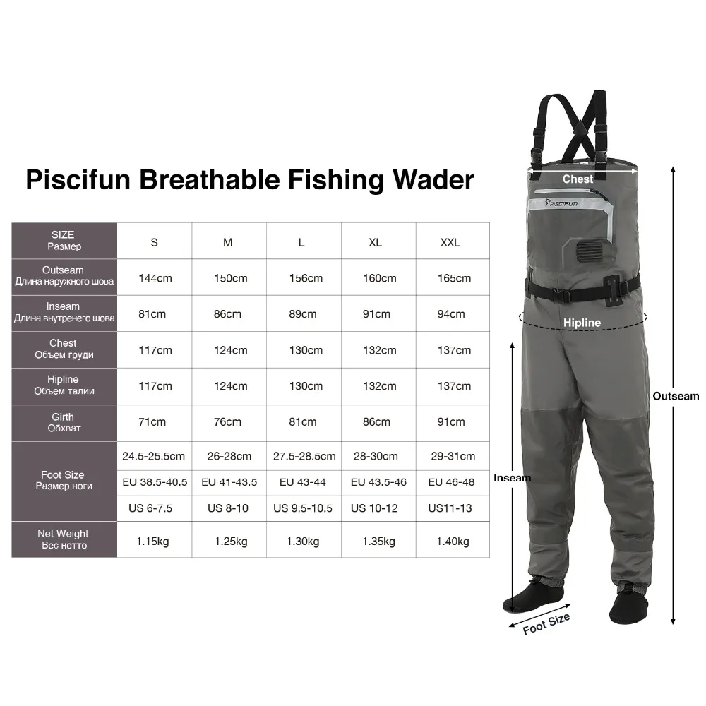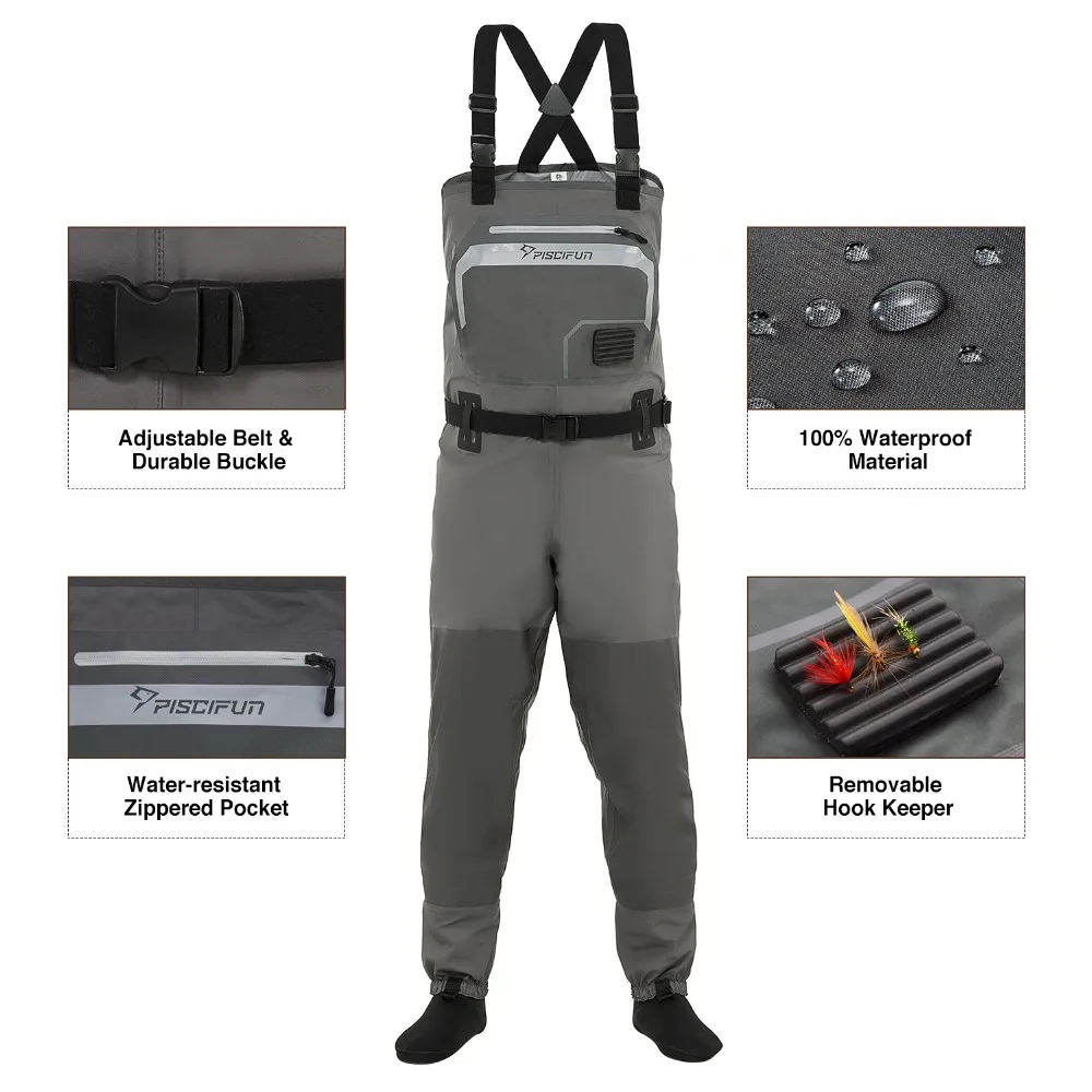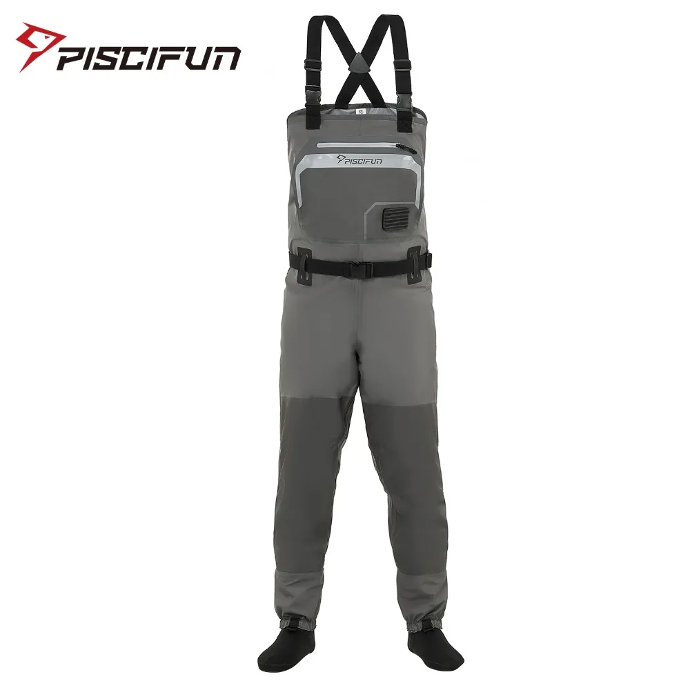 Piscifun 3-Слои полиэстер дышащий Водонепроницаемый чулок ног Fly прорезиненный комбинезон с сапогами для рыбалки брюки для мужчин и женщин с чехол для телефона