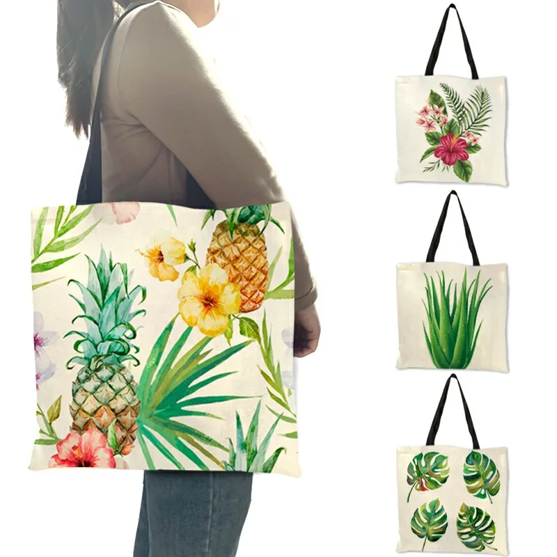 2018 Популярные Модные тропические сумки-тоут с растениями, женские модные сумки с принтом ананаса и кактуса, дорожные школьные сумки для покупок