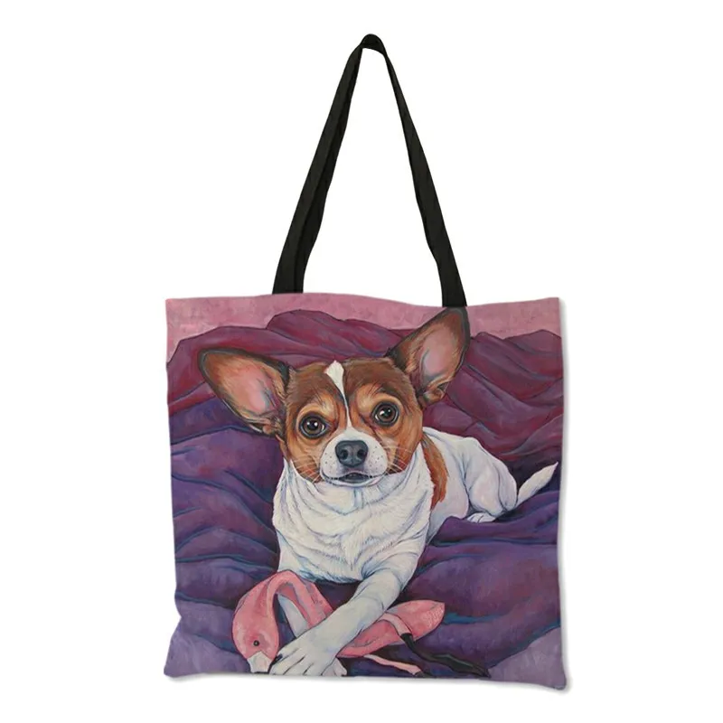 Персонализированная Льняная сумка-тоут для собак с художественным п...